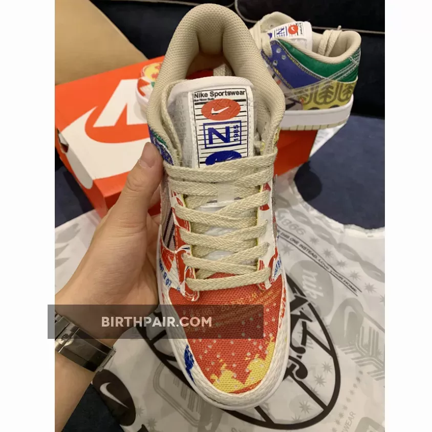 The Nike Dunk is undeniably the Swoosh brand’s best selling silhouette right now, and the Nike Dunk Low City Market is the newest variant of the classic sneaker to launch to the masses very soon. Madly loved by basketball players, skaters, and sneakerheads since its introduction all the way back in 1985. We’ve got a detailed look at the pair right here so read on as we dive deeper, and use our Nike Dunk Low City Market raffles list if you are keen on adding these to your collection.This forthcoming iteration sees a colorway that nods to the Beaverton sportswear brand’s creative art room Blue Ribbon Studio where Nike employees are free to be as creative as possible with the available tools. Working on a low-top profile, panels throughout feature a mish-mash of various materials and graphics.Scheduled to release on the 4th of March, the Nike Dunk Low Thank You For Caring is expected to be met with a significant level of hype.