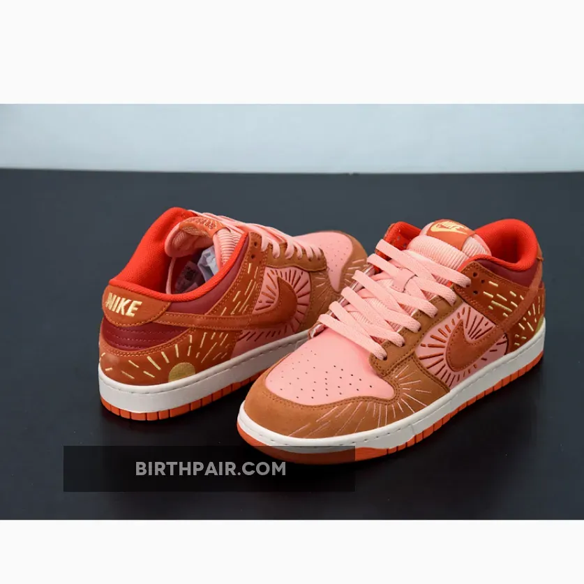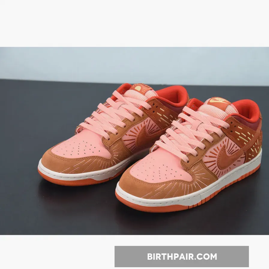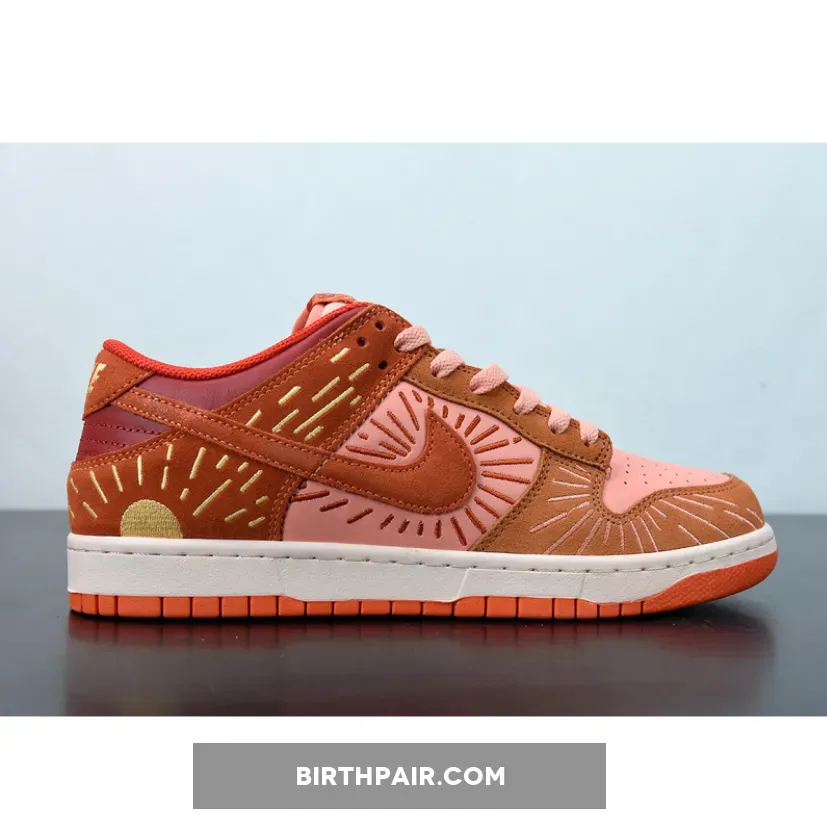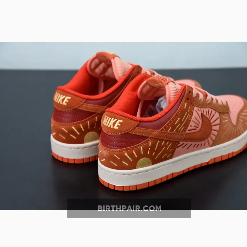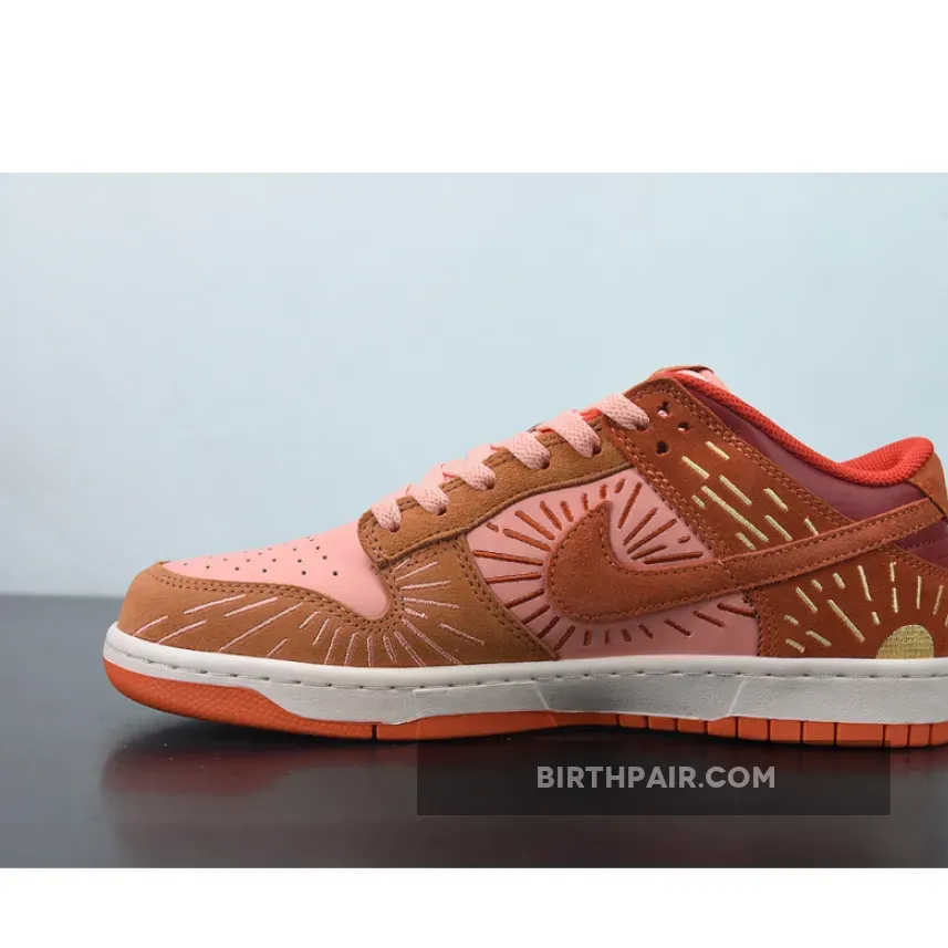 The Nike Dunk Low ‘Winter Solstice’ pays tribute to the shortest day of the year, which is set to occur on December 21st. The story and inspiration behind this shoe can be seen throughout the upper, from the date of the solstice (21.12.Premium suede panels in a beautiful ‘Team Orange’ colour sit alongside ‘Crimson Bliss’ leather underlays, creating a wonder sun-set inspired colourway across the upper. But it is the details and embroidery throughout this shoe which really blow us away.