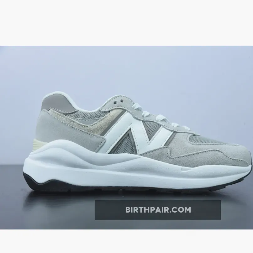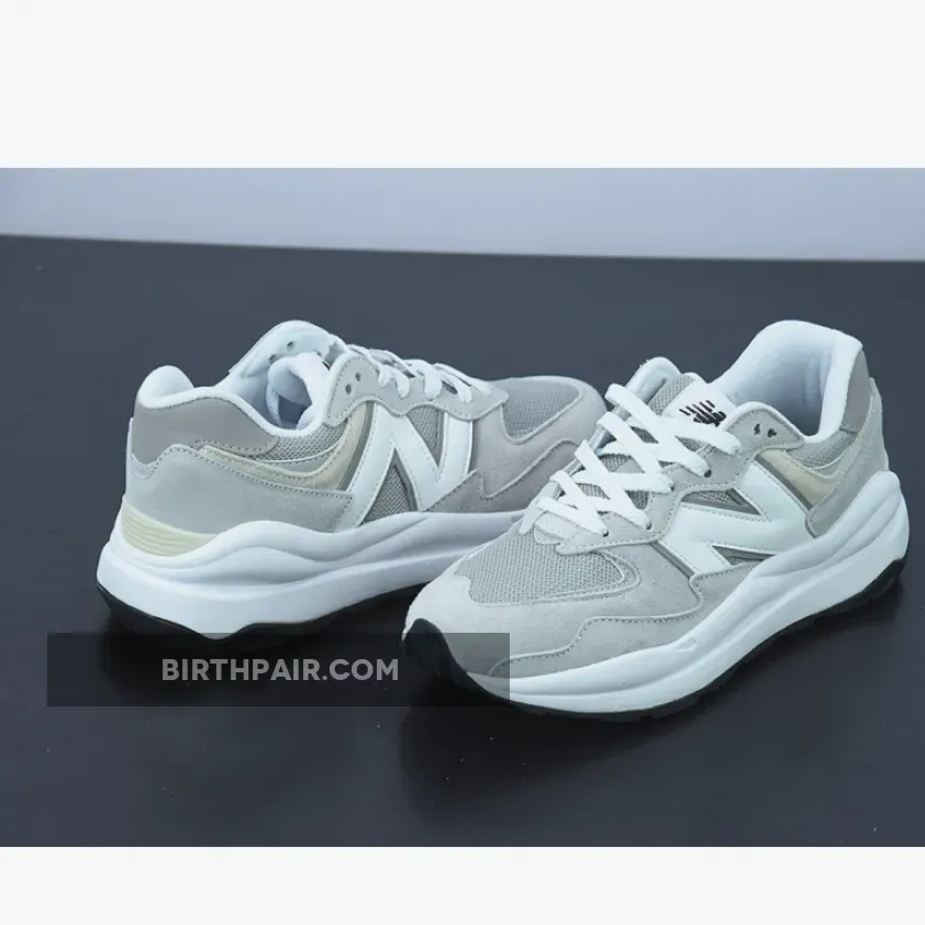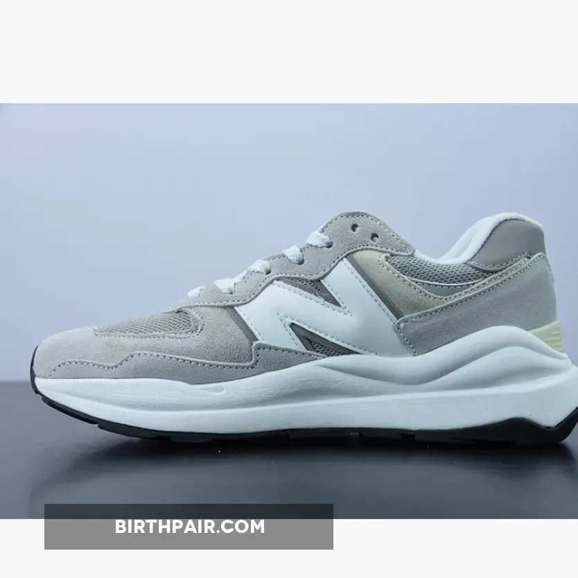 This edition of the New Balance 57/40 keeps it classic with complimentary shades of white and cool-toned grey. The upper is made with a mix of suede and thick mesh netting. The suede has a worn appearance to it that provides the sneaker with added texture. New Balance branding appears on the tongue and the lateral side of the sneaker with the brand’s signature “N.”