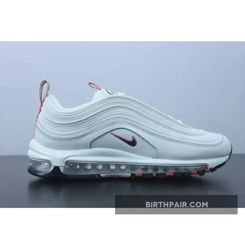 Most recently, Christian Tresser’s iconic design has emerged in a predominantly white arrangement. Mid-foot logos and outsoles opt for a navy and red combination that gets overshadowed by the multi-color styling that takes over the pull tabs at the top of the tongue and heel. The full-length Air Max unit underfoot keeps things simple in an off-white tone, while retro “nike” injects just another touch of color via the sock-liners.