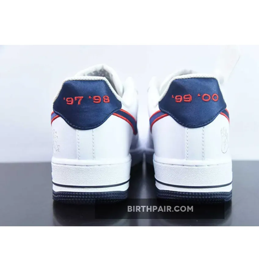 Nike celebrates the Houston Comets’ 4-peat championship run in the WNBA with this AF1 Low rendition. Appreciate greatness in the Nike Air Force 1 Low “Houston Comets Four-Peat”.This special Nike Air Force 1 colourway honours the iconic 4-peat of the Houston Comets with multiple details. To start, the shoe comes in a clean white leather construction with a navy Swoosh and red embroidered outline. The navy heel panel presents the characters ‘97, ‘98, ‘99, and ‘00 as a reference to the four championship years. An embroidered four-finger logo on the lateral rear completes the triumphant colourway.