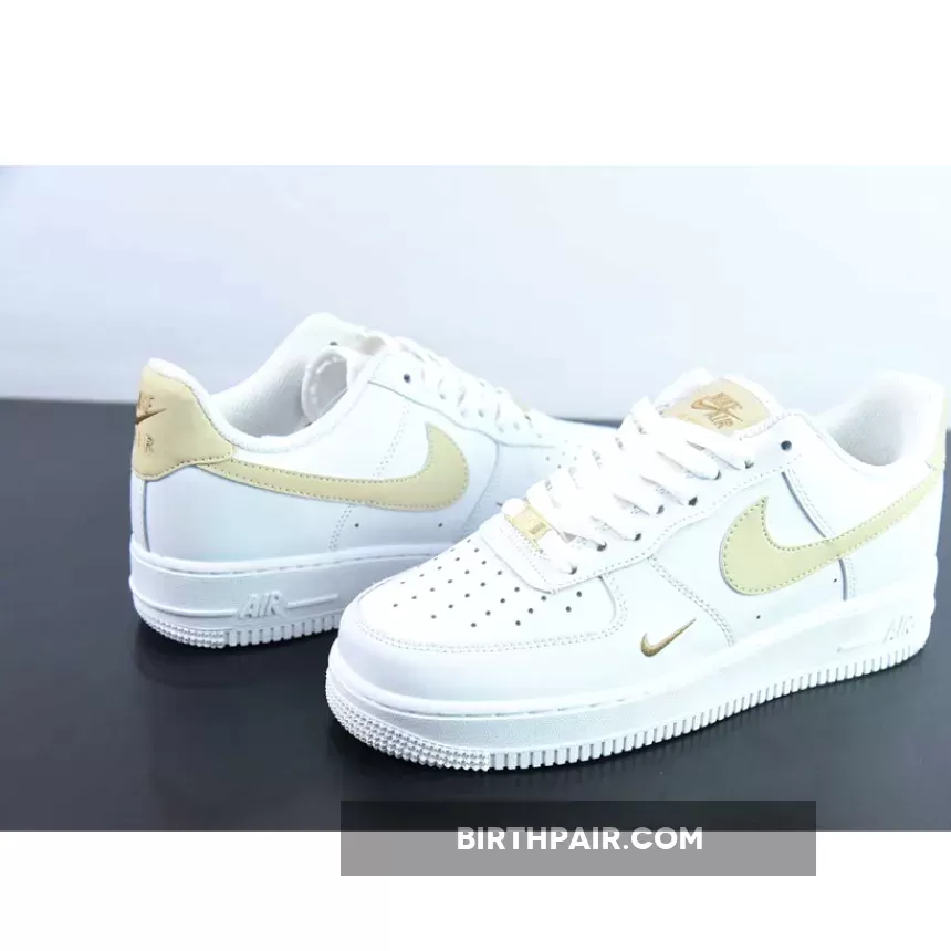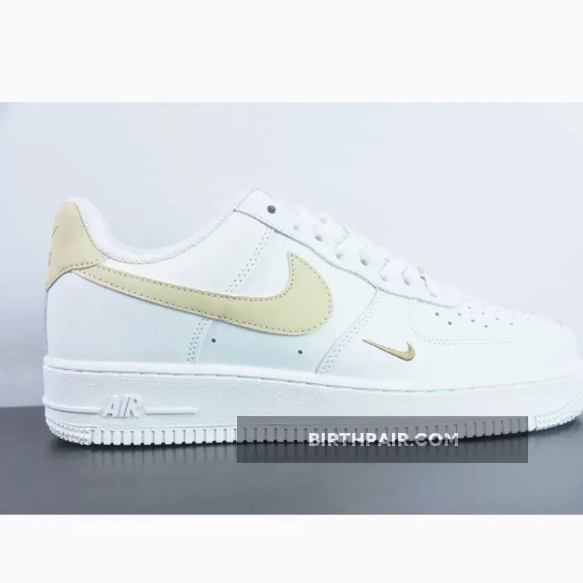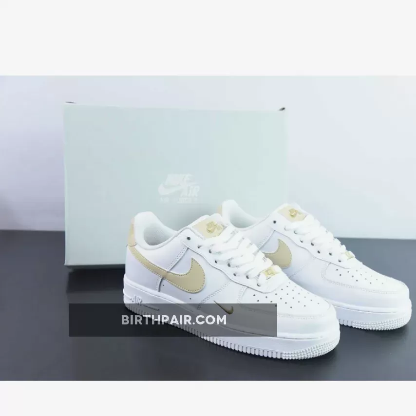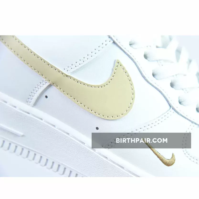 Nike Air Force 1 introduced its metallic colourway early this year to rave reviews. The Nike Air Force 1 Essential White Gold is the latest in this series. This 1982-design now comes in an angelic two-tone palette. The upper is a crisp all-white smooth and perforated leather which creates the perfect background for the muted gold Swoosh along its hind quarter which matches the heel notch.