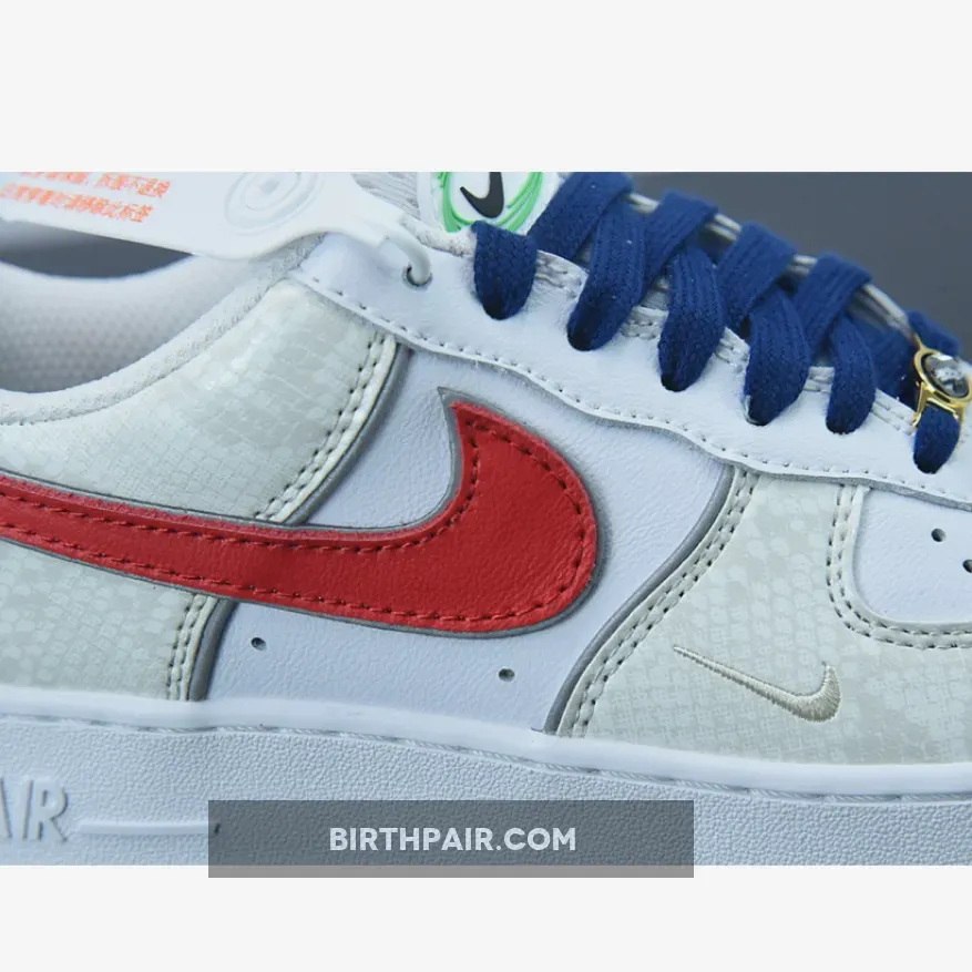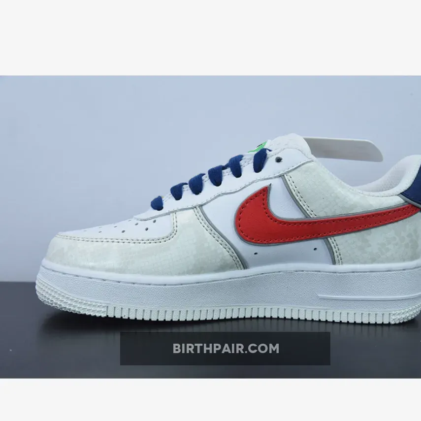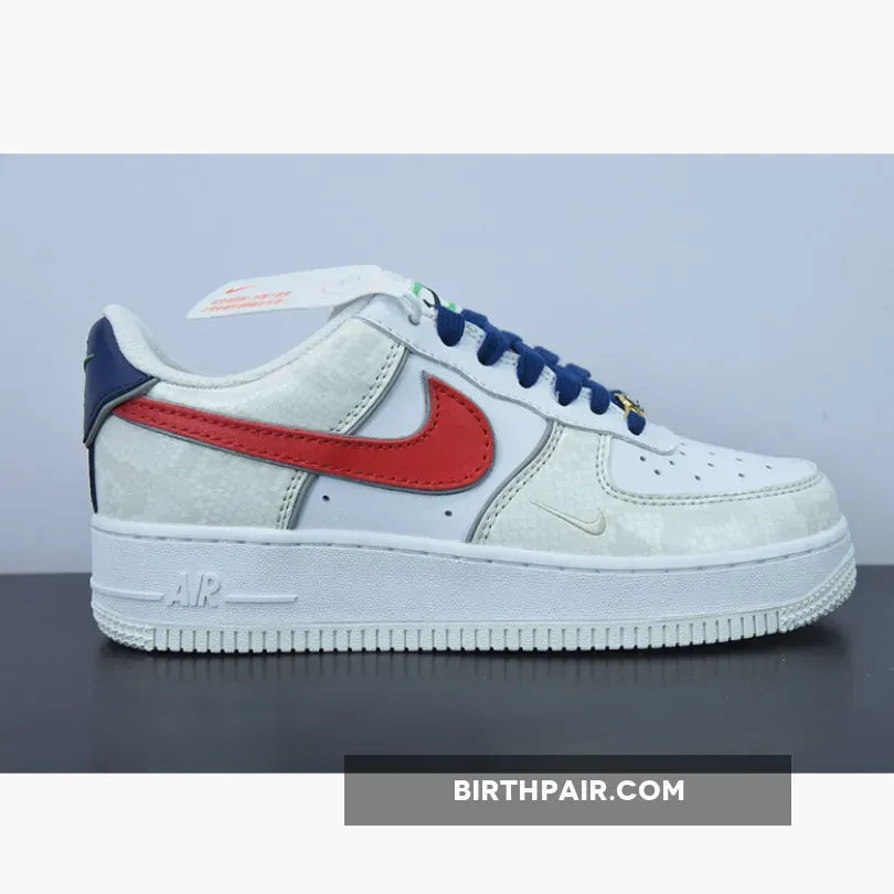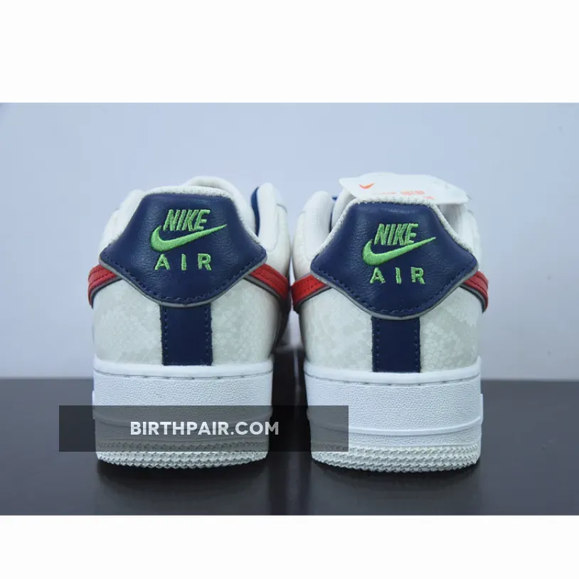 This Nike Air Force 1 Low comes with White leather on the base while snakeskin print appears on the overlays. Next, Blue lands on the laces and heel, Red fills in the Swoosh, and Green fills in the heel branding and outlines the tongue logo. 3M reflective accents run throughout, a jewel lace jewel with ‘AF-1 82’ text.