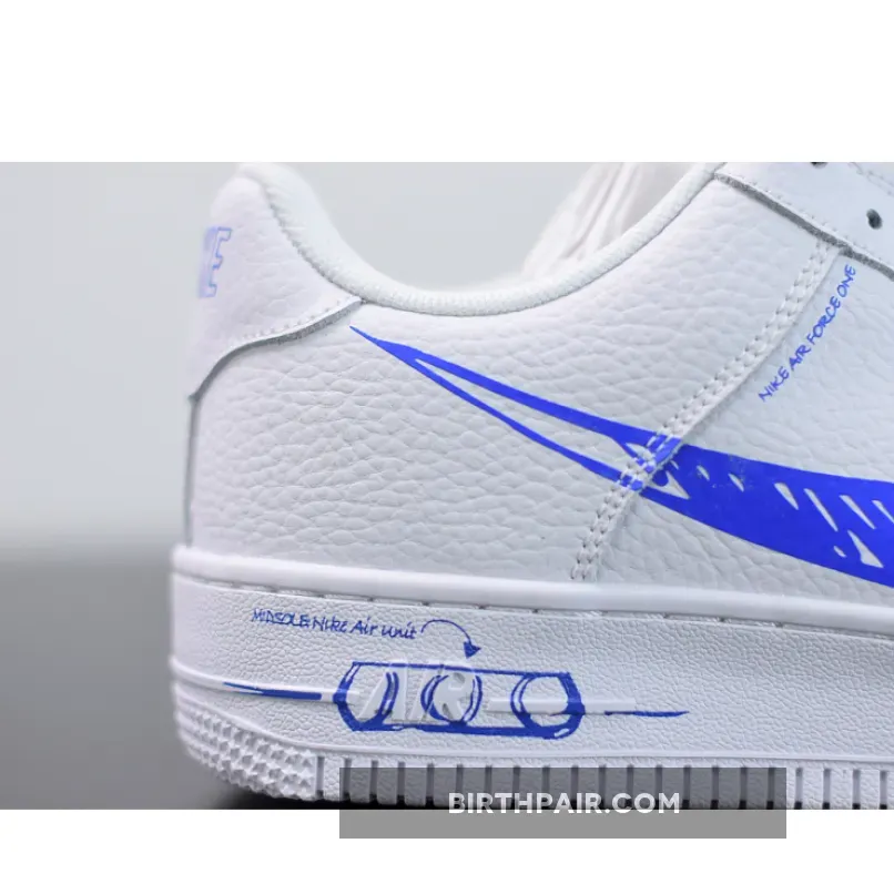 The Nike Air Force 1 Low Sketch White Royal is the latest rendition of the classic silhouette that has been a fan-favourite since 1982 to launch. The reimagined greats honour Nike designer Bruce Kilgore’s original concept sketches for the model through graphics printed onto the uppers, in similar fashion to the other recent “Sketch” releases. While the AF1 wasn’t the first ever shoe to utilise Nike Air technology (that was the Tailwind Runner in 1978), it was one of the most coveted releases to incorporate the famous cushioning system. The uppers here are crafted from high-quality tumbled white leather for a premium look throughout, and are then printed in signature Royal Blue with the original prototype sketches. The sketches in question depict the Air Unit which was to be concealed inside the shoe (with the same unit later being made visible on the Air Max 1), and the classic Swoosh branding that adorns the side of each sneaker.