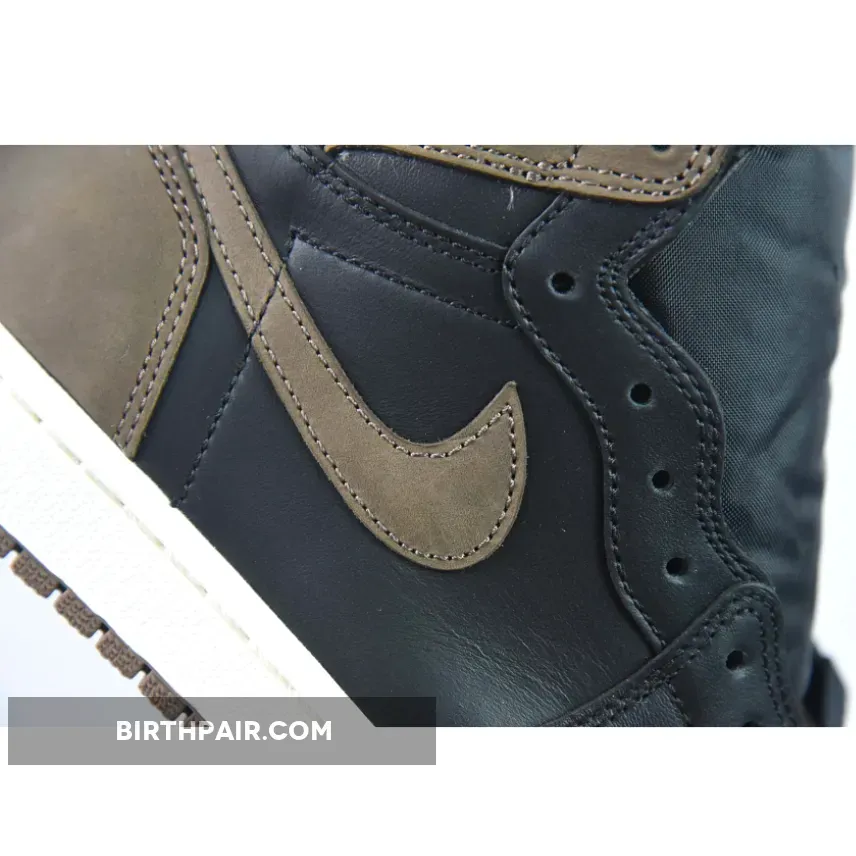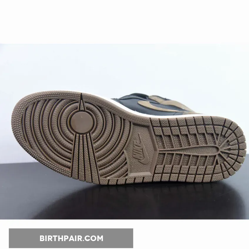 Underfoot, a lighter story takes place as the Jordan 1 tread is dressed in brown, with a sail colour wrapped around the midsole to balance the darker tones of the upper.