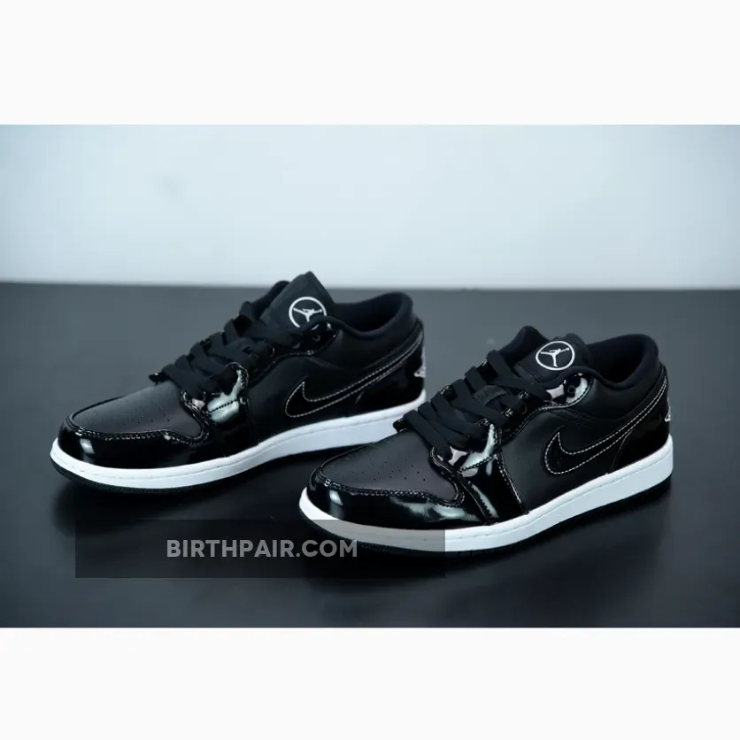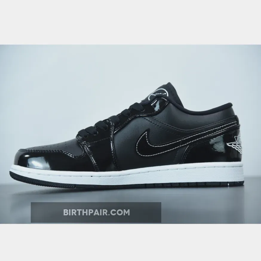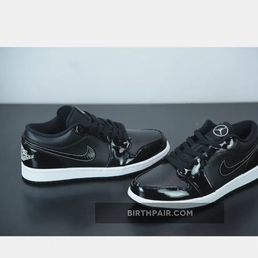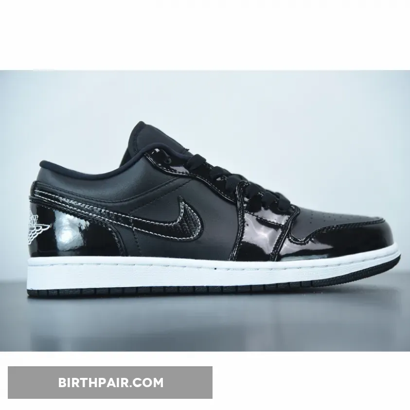 Loving the sleek, glossy vibes of the Air Jordan 1 Low All-Star ?? Black leather with patent overlays? Yes, please! Classic silhouette, comfy midsole, just right for game time or street style ? #JustGotEm #AirJordan1Low #SneakerGame ??