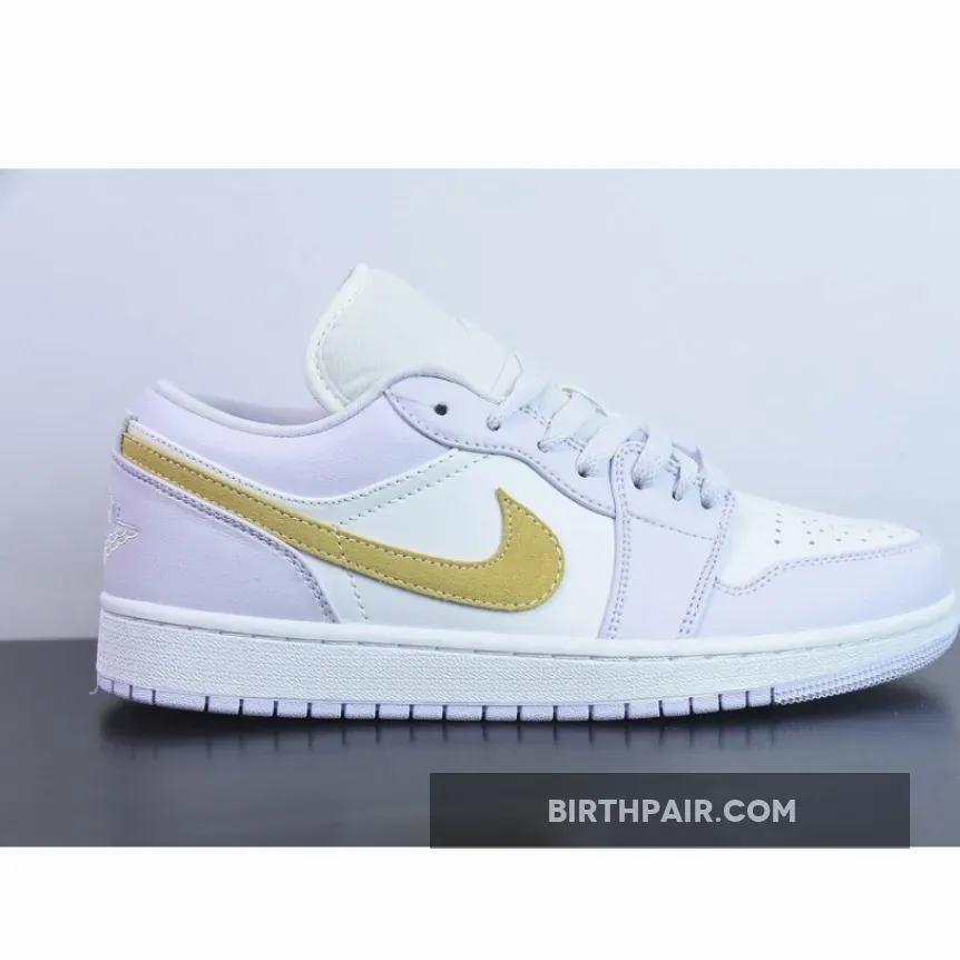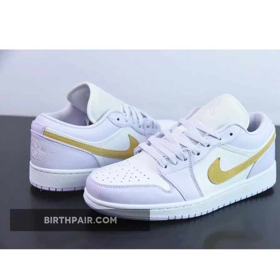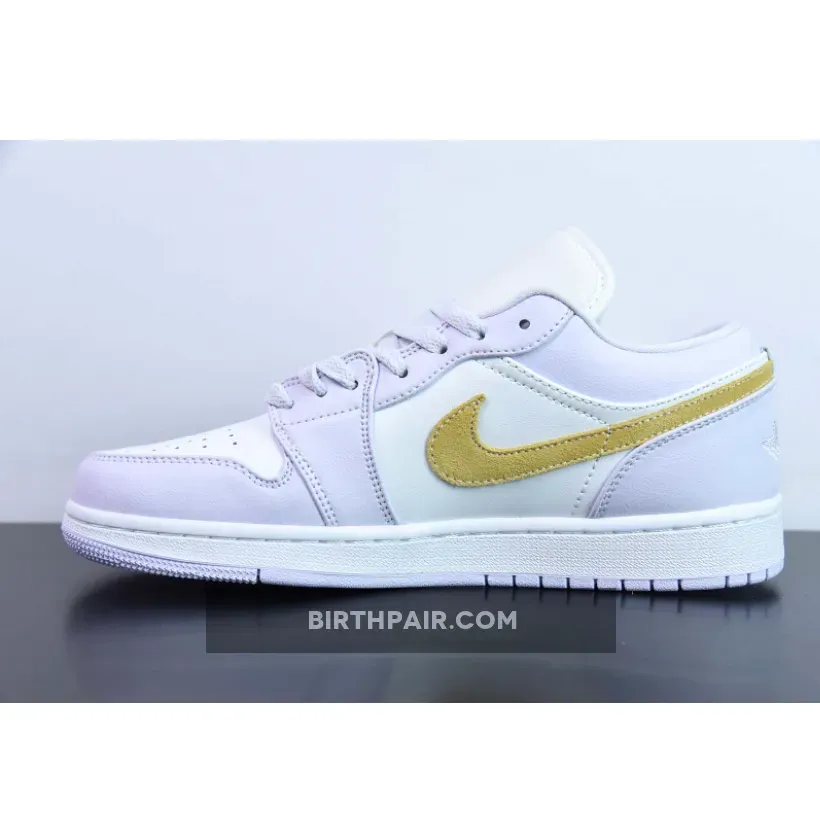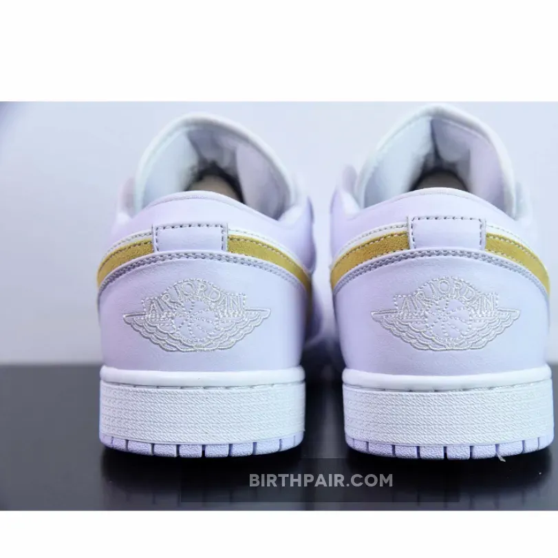 When Peter Moore introduced the Air Jordan 1 in 1985 as Michael Jordan’s first signature basketball sneaker, it was an instant hit with the audience and sneaker enthusiasts. Today, the AJ1 is more than just a hoops classic; it’s a lifestyle model loved by the masses. Now arriving in its classic low-top version, the new Air Jordan 1 Low Barely Grape colourway is a must-have for fans of pastel colours.The upper is crafted with a smooth leather base in white and lilac. The perforated toe boxes and quarter panels opt for the white colour, leaving the overlaying counterparts with the very light purple tone. On the contrary, the Nike Swooshes on the lateral and medial sides feature suede material in yellow, adding an eye-catching feature to the trainers.
