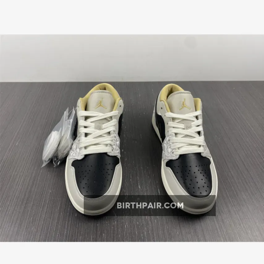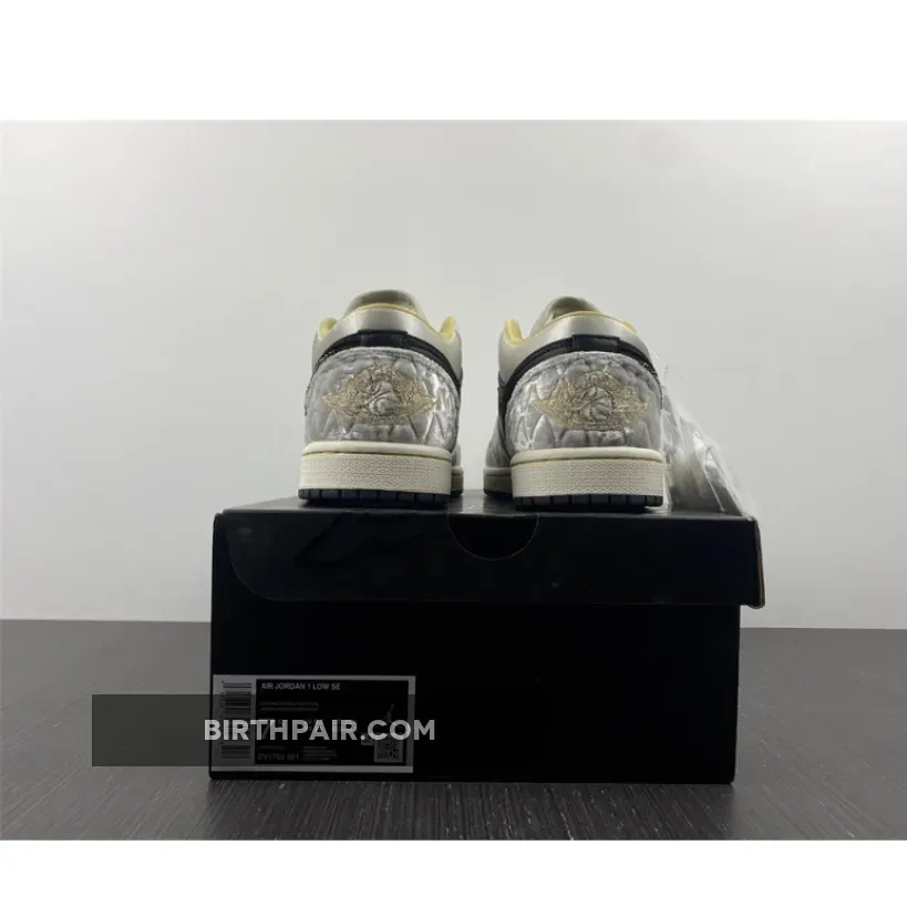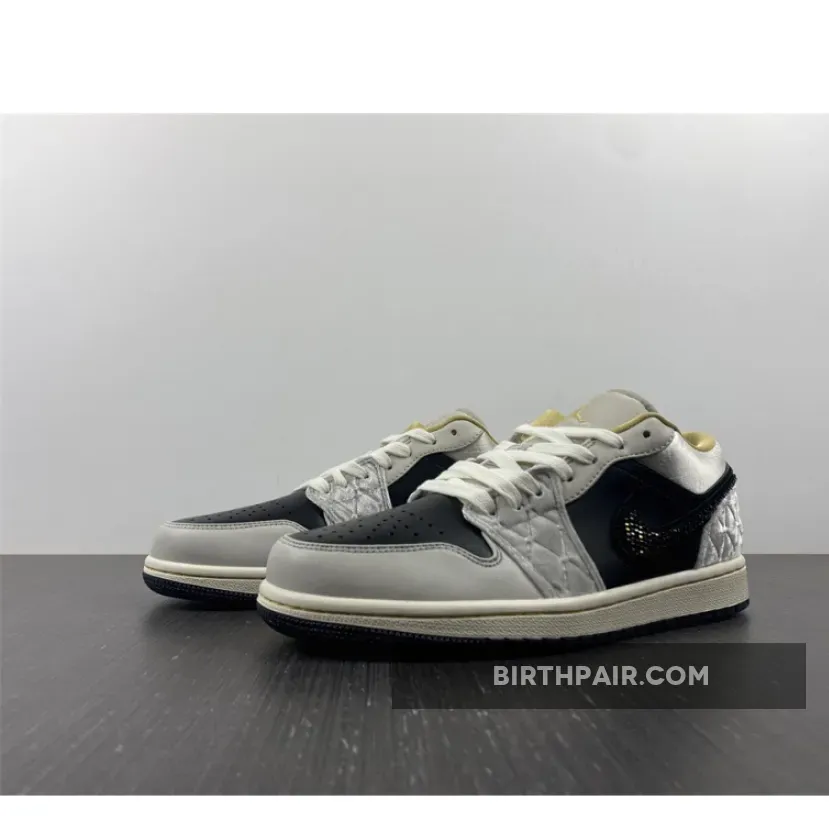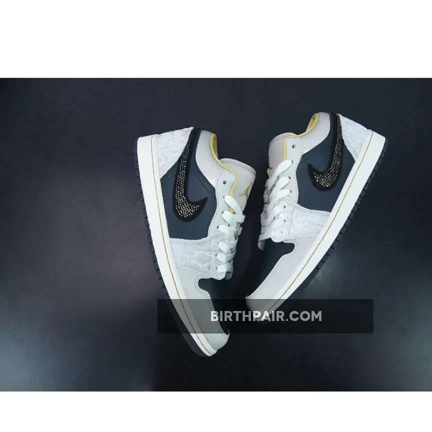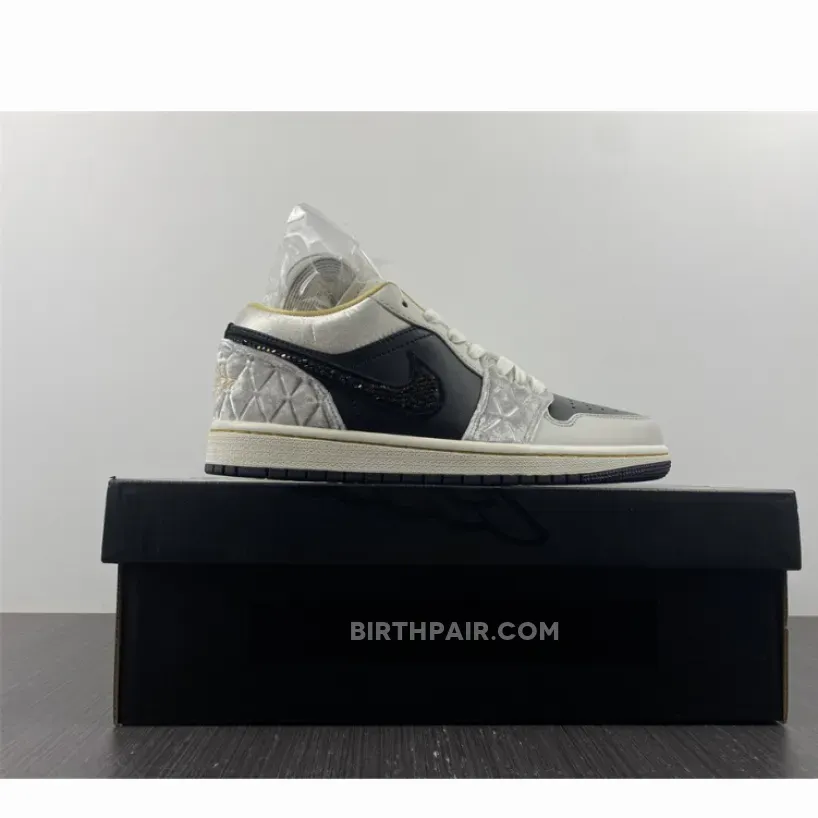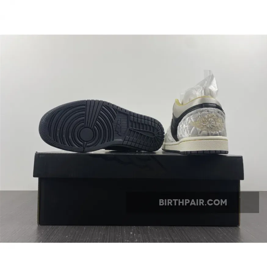 “I’m loving my new AJ1 Lows! The iridescent beaded Swoosh is so cool ?. The mix of leather, satin, and suede gives it a unique texture. Black, grey, and gold colorway is sleek and versatile. Comfortable fit and great traction on the sail midsole ?. Overall, I’m really pleased with this purchase ?.”