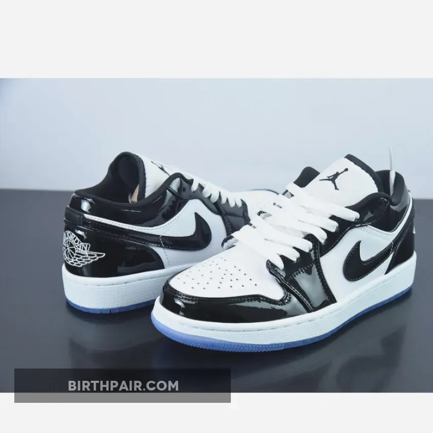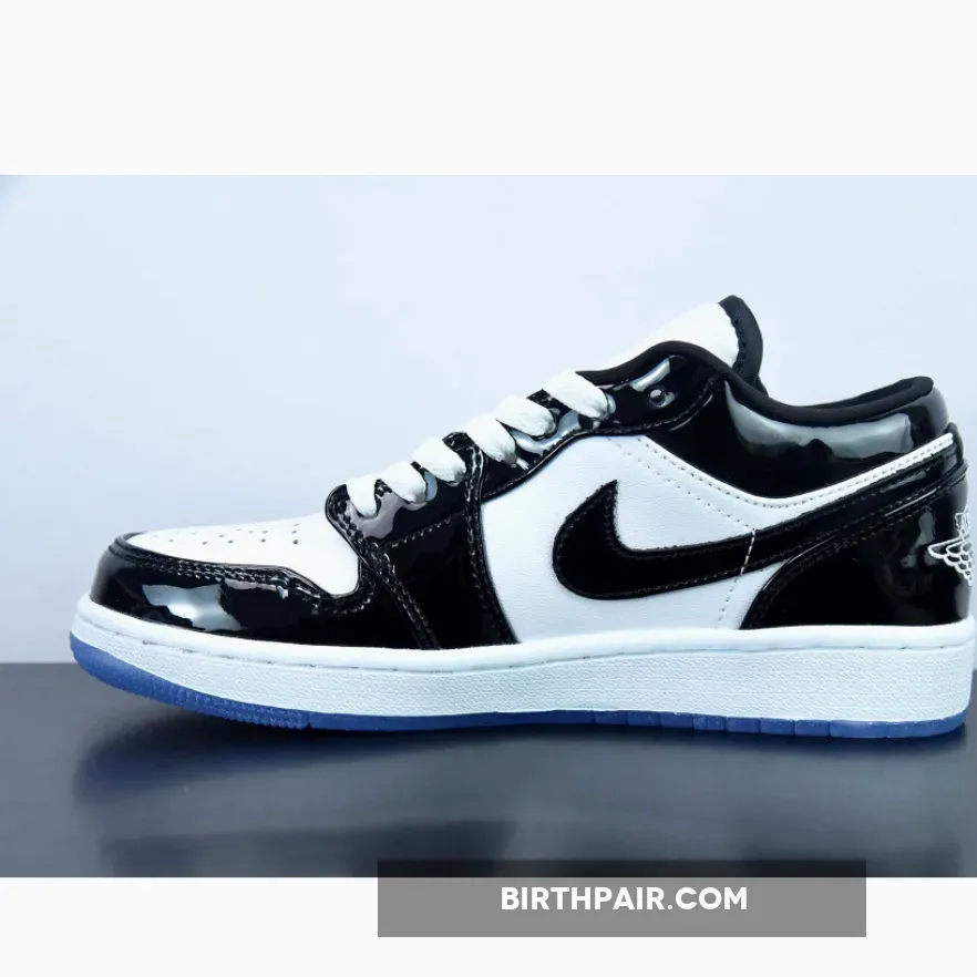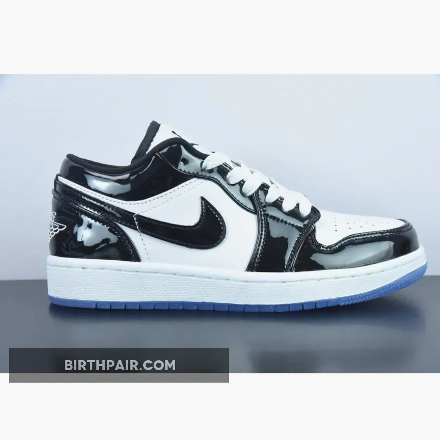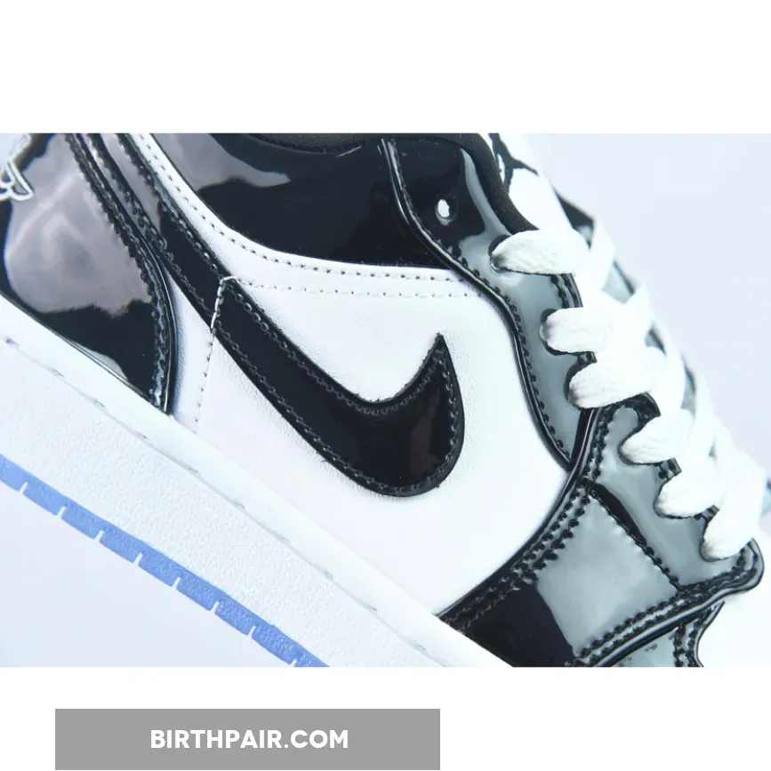 Sleek but eye-catching, the Air Jordan 1 Low Concord White Black features a simple monochromatic design that’s truly versatile. It starts with a smooth white leather base which covers the quarters and perforated toe. Meanwhile, shiny black patent leather overlays add reinforcement and a stylish flair. Classic Air Jordan 1 Low details such as the padded tongue, lightweight midsole with comfy cushioning and durable icy outsole complete this release. A modern classic!