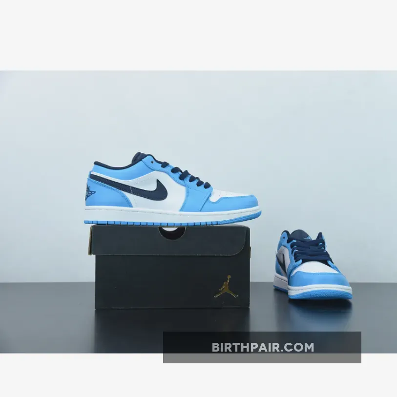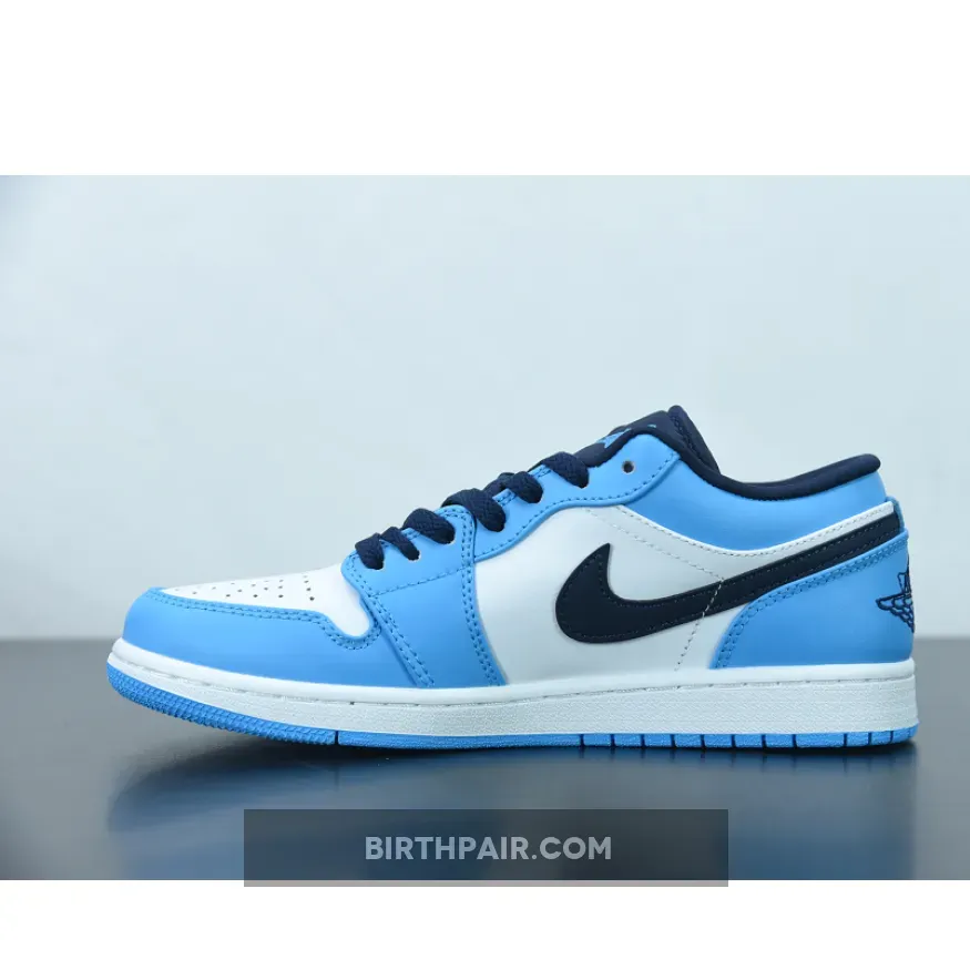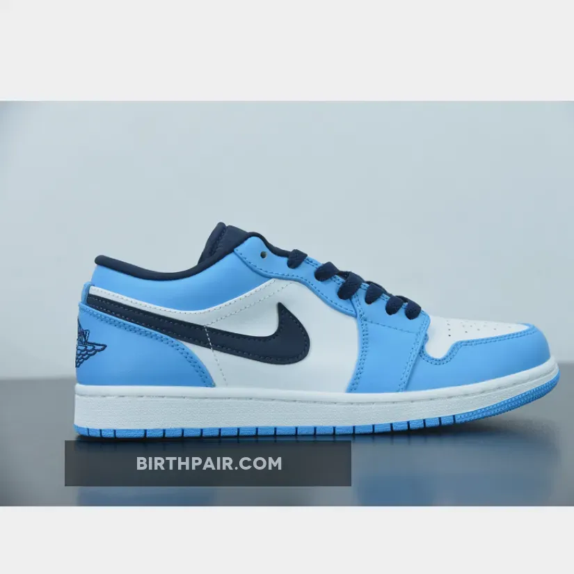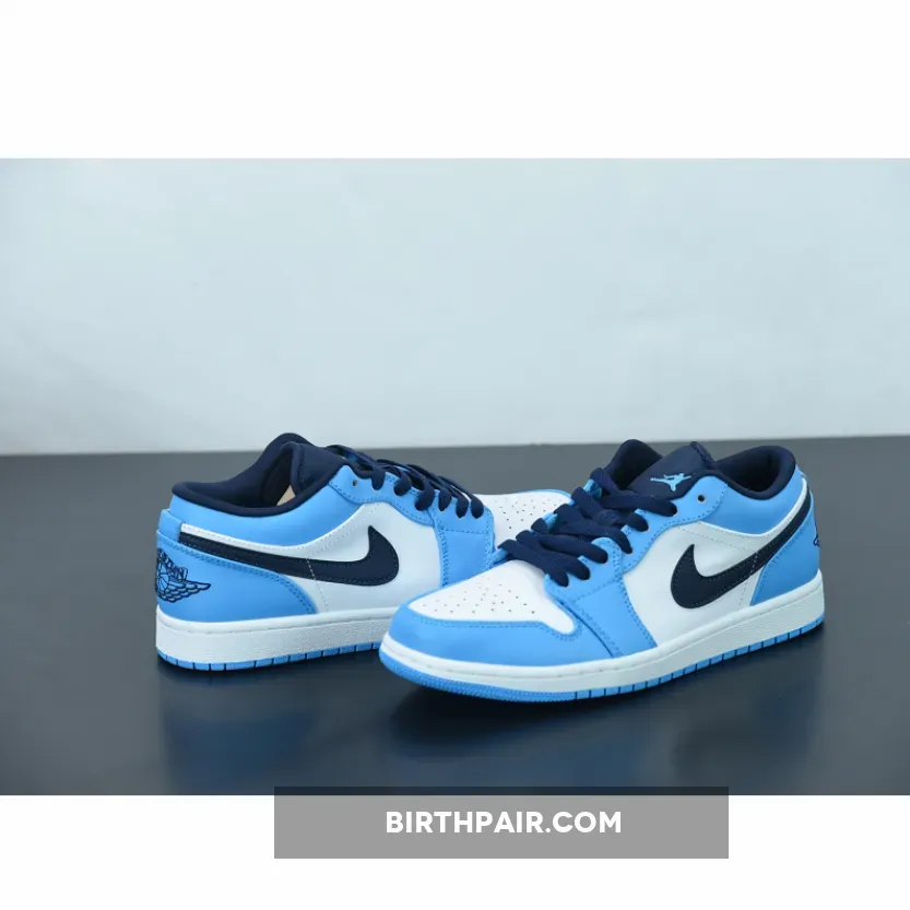 The Air Jordan 1 Low UNC University Blue is the latest addition to the Air Jordan 1 Low. This pair proudly shows off the team colour of Michael Jordan’s alma mater, the University of North Carolina. This sky blue in smooth leather is set off against a white toe box, quarter and midsole.