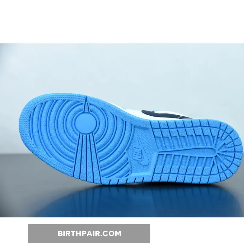 A navy Swoosh graces the quarter, matching the sock liner, tongue, laces and embroidered Wings logo on the heel tab. The Jumpman insignia stands out in University Blue on the navy tongue tab, contrasting with the navy Jumpman on the University Blue insole. Do use our Air Jordan 1 size guide to know how they fit.