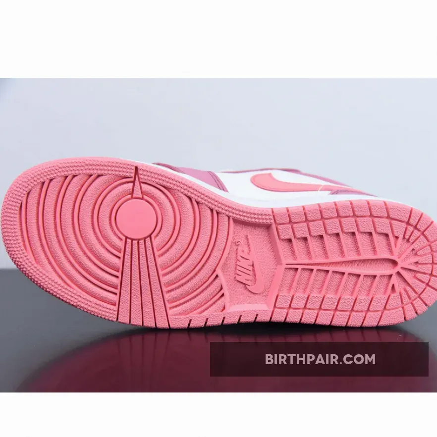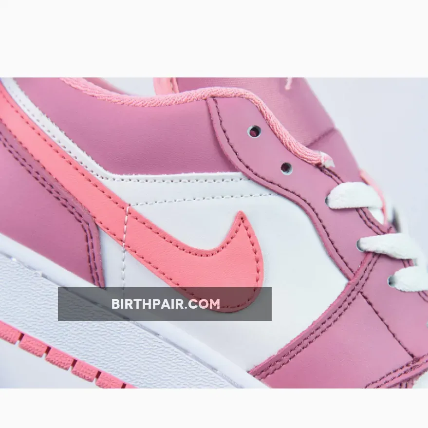 The upper part of the Desert Berry Jordan 1 Low (GS) is made of high-quality leather material. The shoe has a low-cut design which allows for easy movement. The padded collar and tongue add extra comfort to the sneaker.