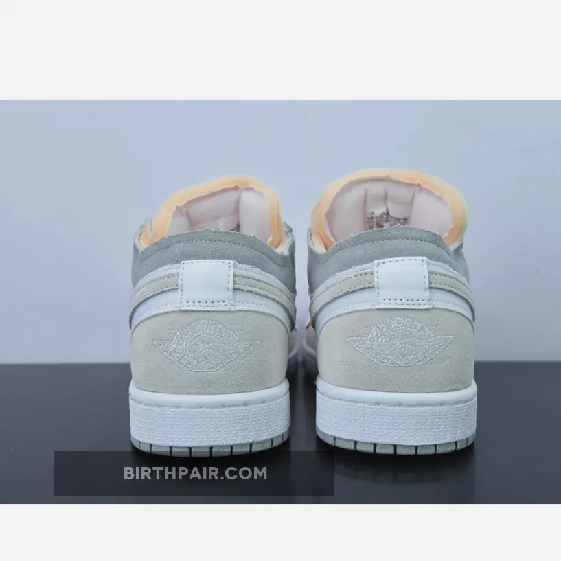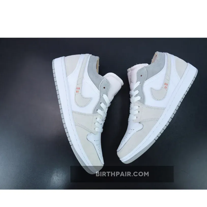 The Air Jordan 1 Low Inside Out follows the tried-and-true formula of deconstructed design that will surely delight sneakerheads all over the world. This fresh rendition of the Nike Air Jordan 1 showcases a sleek upper dressed in smooth white leather and cream and grey suede overlays. Stylish “undone” details include a perforated toe box placed over the toe cap, orange stitches at the Swooshes and exposed foam in its padded tongue. A classic, refreshed.
