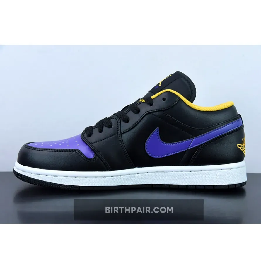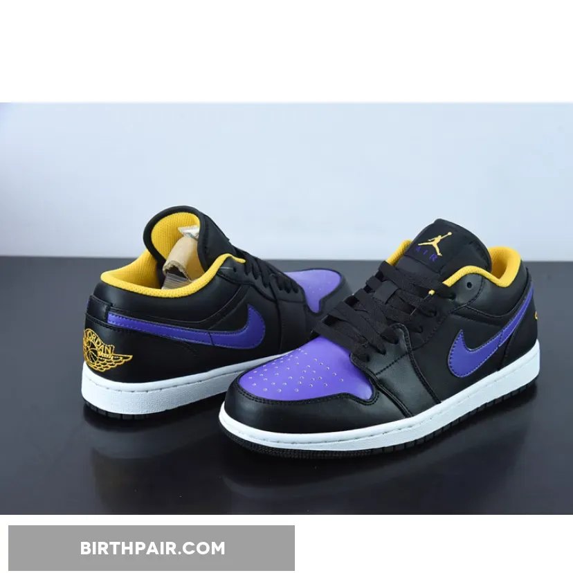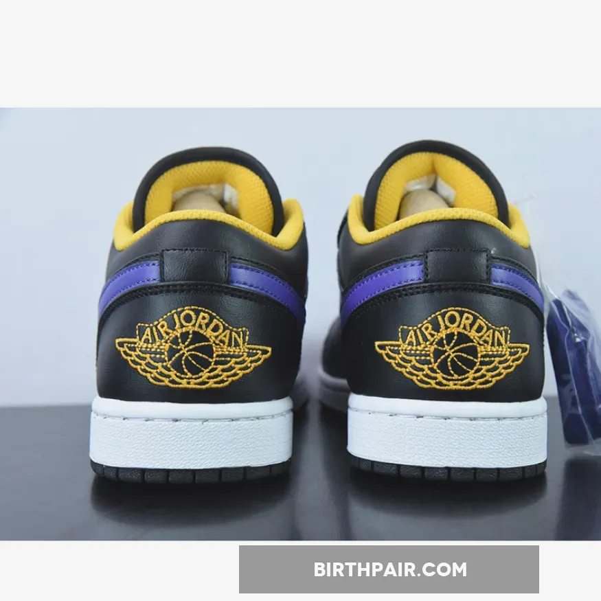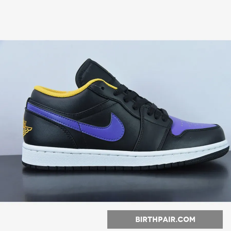 With a rich sporting history, it’s no surprise that we see classic Jordan silhouettes like the Air Jordan 1 Low appear in just about every basketball team-themed colourway under the sun, and although Chicago styles have a special place in most Jordan fans hearts, Lakers colourways have been pretty commonplace too. The upcoming Air Jordan 1 “Lakers” sees the team’s signature colours dress the classic, albeit in a much more toned-down colour blocking pattern than other pairs.The usually dominant purple and gold hues take a backseat here, as it’s stealthy black leather that takes over the base of the “Lakers” AJ1 Low. Purple peeps through on the perforated toebox and Nike Swoosh, whilst gold accents are reserved for the sockliner, Jumpman branding and embroidered Jordan Wings insignia.