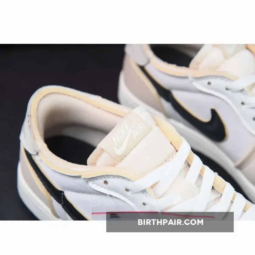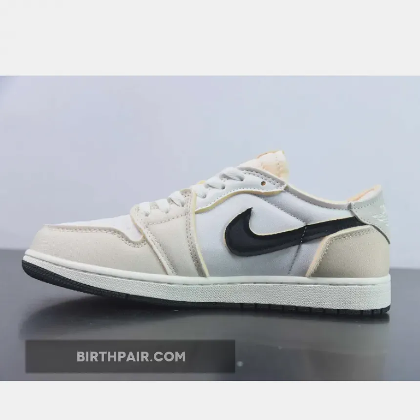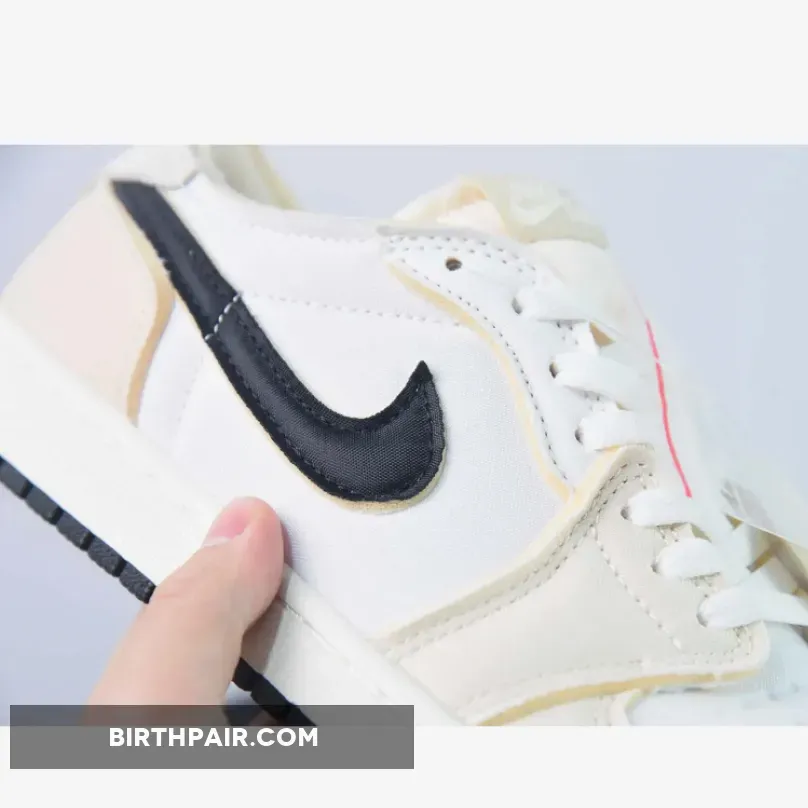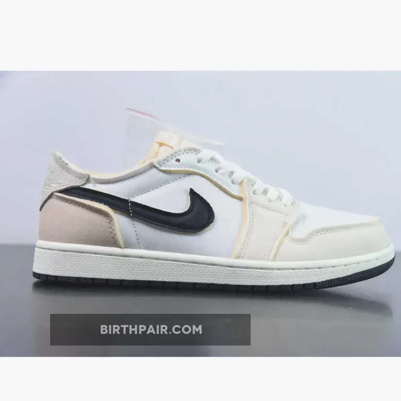 The Jordan Brand’s streamlined version of its flagship shoe, the Air Jordan 1 OG EX, has a fresh variation in creamy hues punctuated by black. Check out the Air Jordan 1 Low OG EX “Coconut Milk”.This low-cut AJ1 OG EX boasts a sensible, stripped-down design with a water resistance feature. The upper shows off a deconstructed style, with exposed foam edges to give it a 3D aesthetic. A crisp white base is accompanied by warm sail overlays, a tan heel counter and bold, black signature profile Swooshes on both the medial and lateral mid-panels. The tongue tabs feature white-on-beige branding and the black insoles show off a classic sail-coloured Nike logo. The suede heel tabs, on the other hand, feature barely-there white Wings logos.