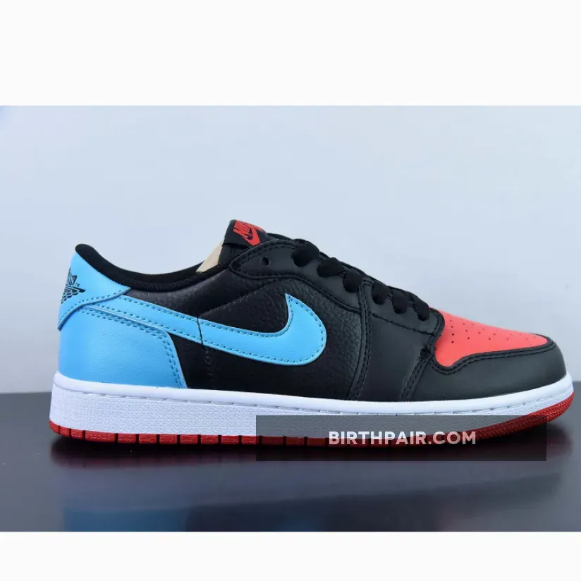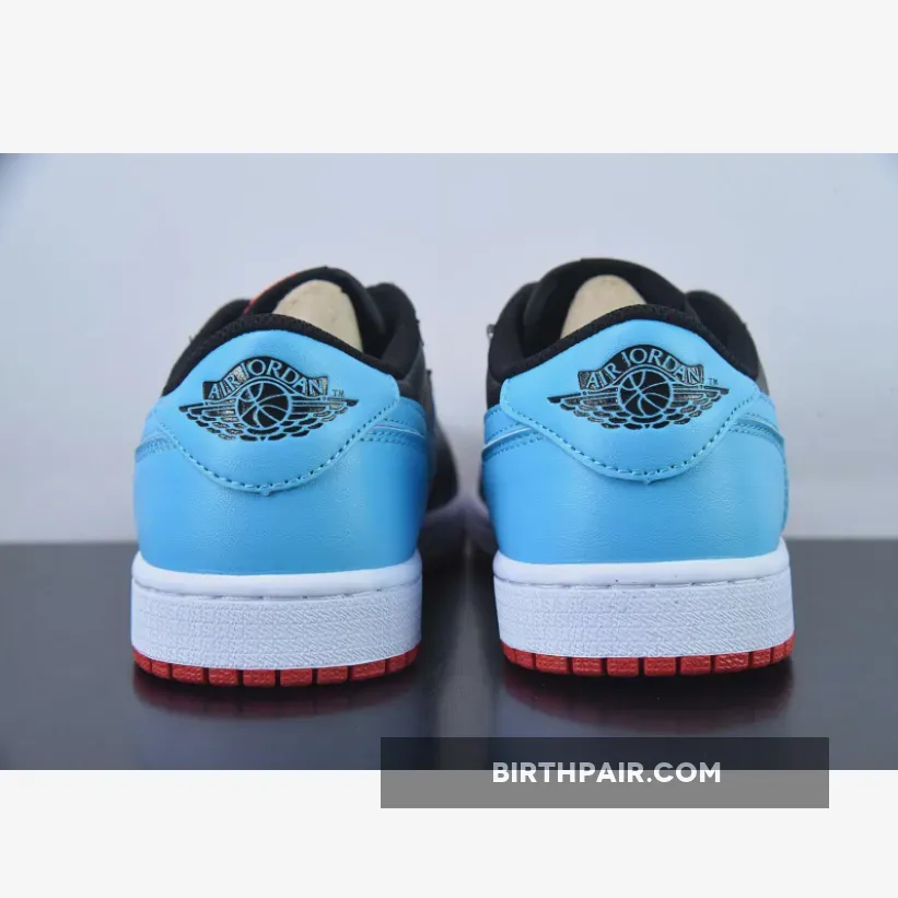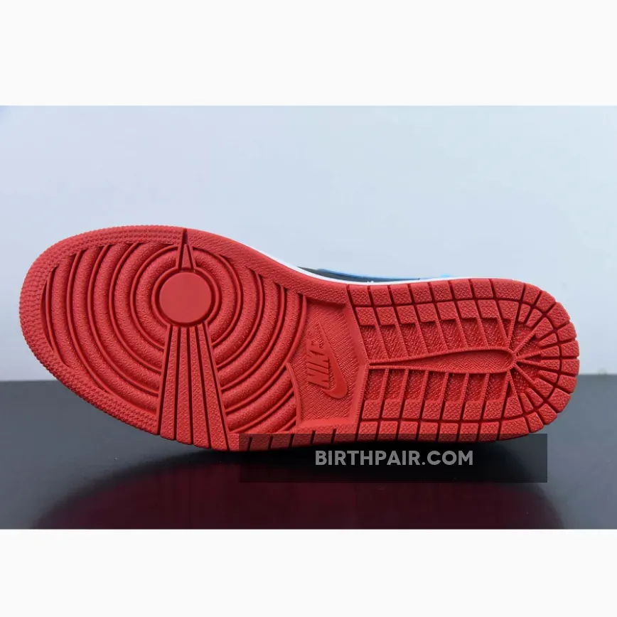 This Air Jordan 1 Low resembles that 2020 release. The story of Michael Jordan’s career from College basketball to the professional ranks of the NBA is reflected on the upper. A University Blue paints the back portion of the shoe, representing how Jordan’s University experience laid the foundations for his future career. The Swoosh is also decorated in the UNC colours and is sewn on top of a black leather panel that we so often see with Air Jordan 1s. The toe box dons a Chicago Red and speaks to how Jordan’s time at the club springboarded him into stardom. A black wings decal is printed onto the back heel tab as is the case with most Air Jordan 1 lows, giving the shoe its final stamp of approval.