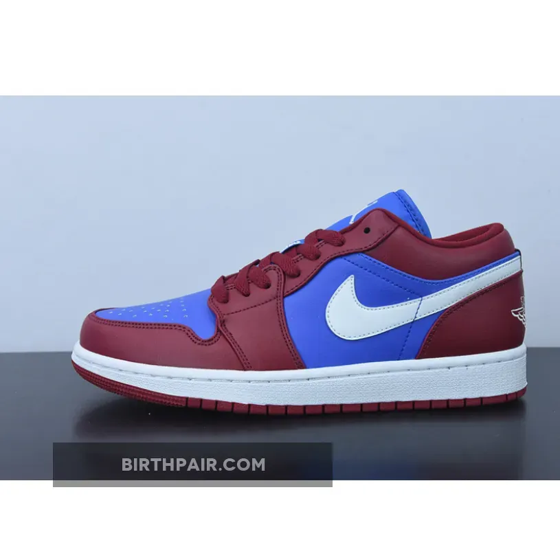The Jordan Brand adds a vibrant brand new colourway to its Air Jordan 1 Low lineup in time for the arrival of spring. Introducing the Air Jordan 1 Low Pomegranate Blue.Dressed in a “Pomegranate/ Medium Blue/ White” colour scheme, this AJ1 Low comes constructed in smooth leather featuring a Medium Blue base showing on the toe box and the quarter with deep red Pomegranate overlays on the toe cap, the eyestay panel, the collar and the cupsole, matching the laces and the rubber outsole. White branding on the tongues, the signature profile Swooshes on both the medial and lateral sides of the shoe and the Wings logo on the heels completes the shoe’s design.