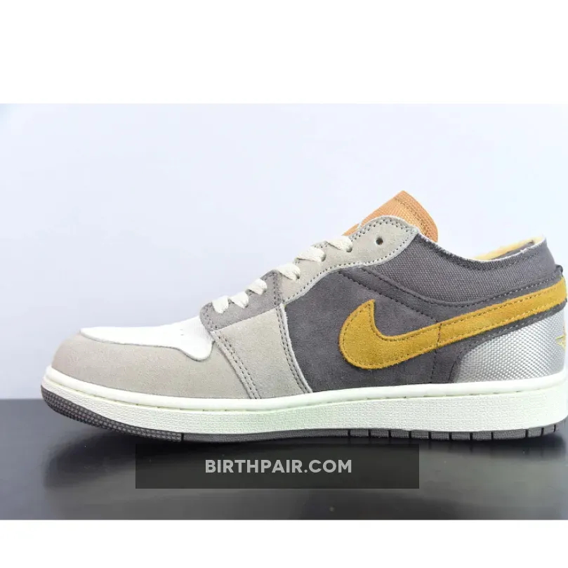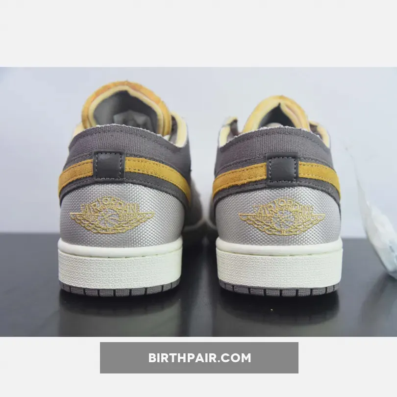 Compared to the Air Jordan 1 Low OG EX, the Air Jordan 1 Low “Inside Out” exercises a bit more moderation. This offering of the Air Jordan 1 Low comes constructed in a mix of ballistic mesh and suede materials. Despite what its namesake may suggest, only the toe box is noticeably inverted; the rest of the shoe is much more understated, with slight touches — like the embroidery along #23 stitching on the lateral Swoosh atop a two-tone rubber sole . Here, these details are simply given a fresh coat of paint: both light and dark shades of brown dress the suedes throughout, while lighter, albeit more muted yellows highlight the tongue and check.