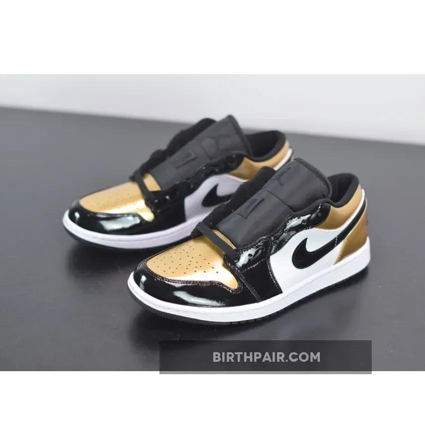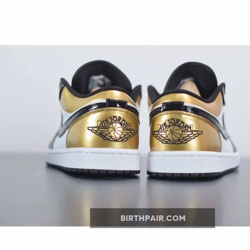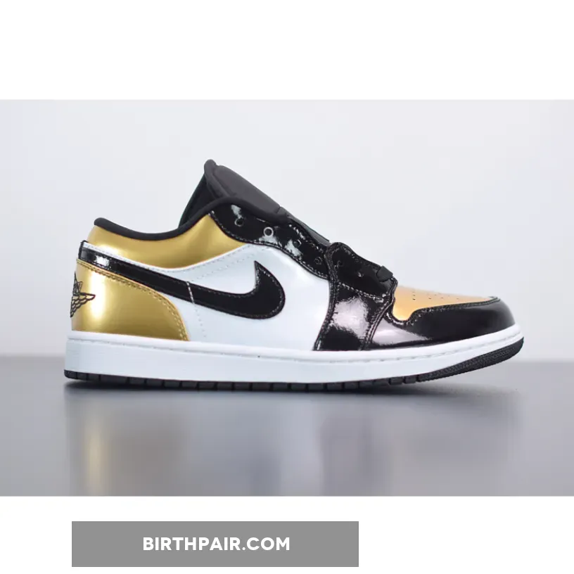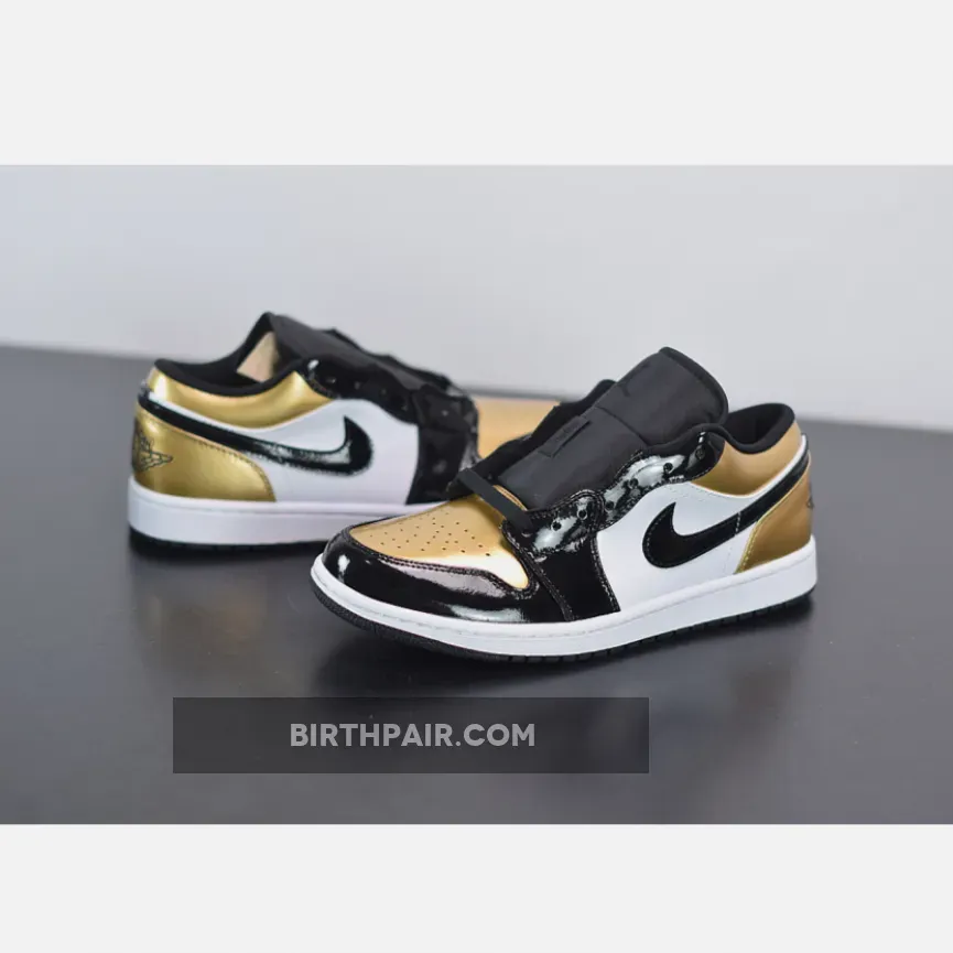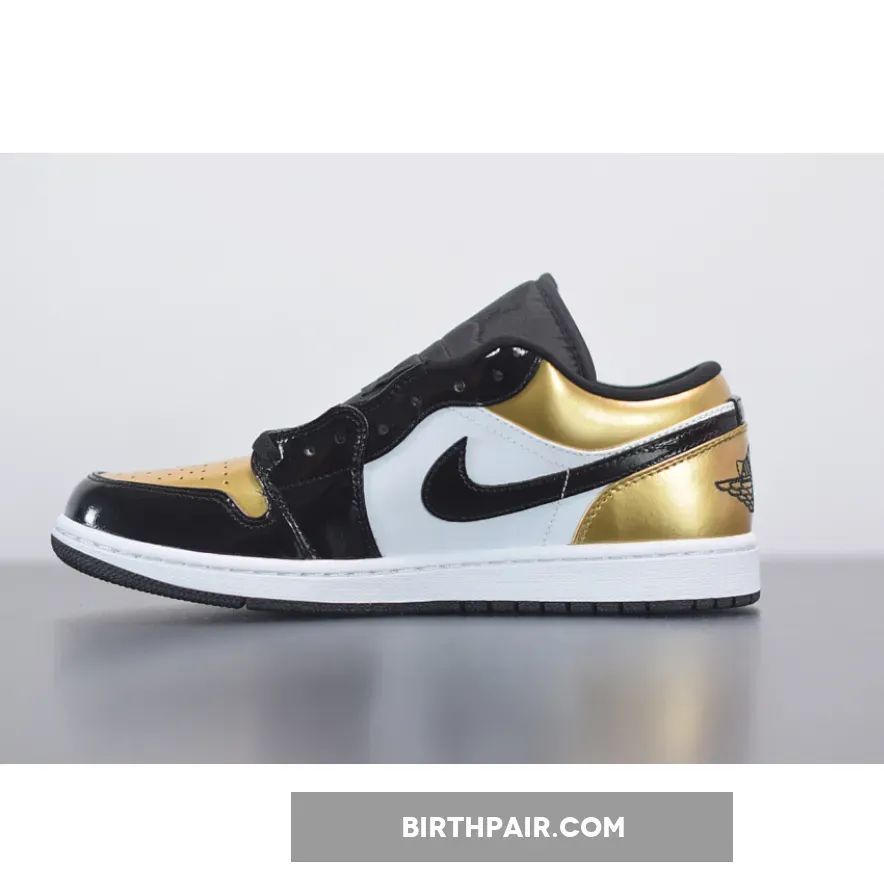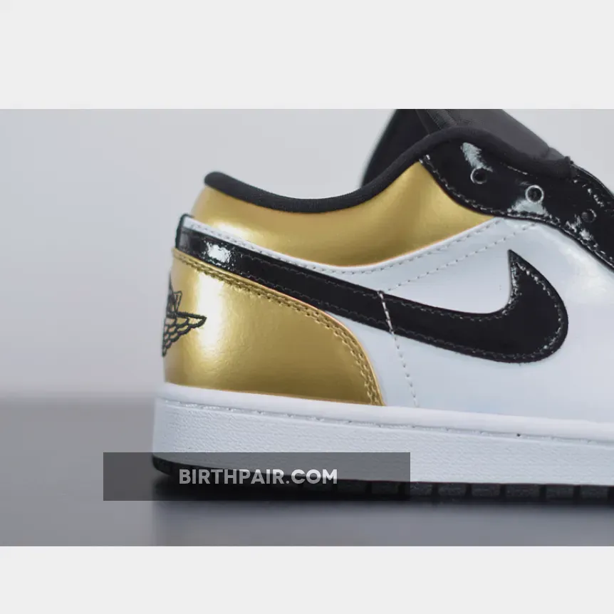 The Air Jordan 1 Low ‘Gold Toe’ offers a classic design with premium materials. The black, white, and gold color scheme is striking, while the gold patent leather accents elevate the overall look. Comfort and style in a timeless sneaker. #AirJordan1Low #GoldToe #SneakerGoals
