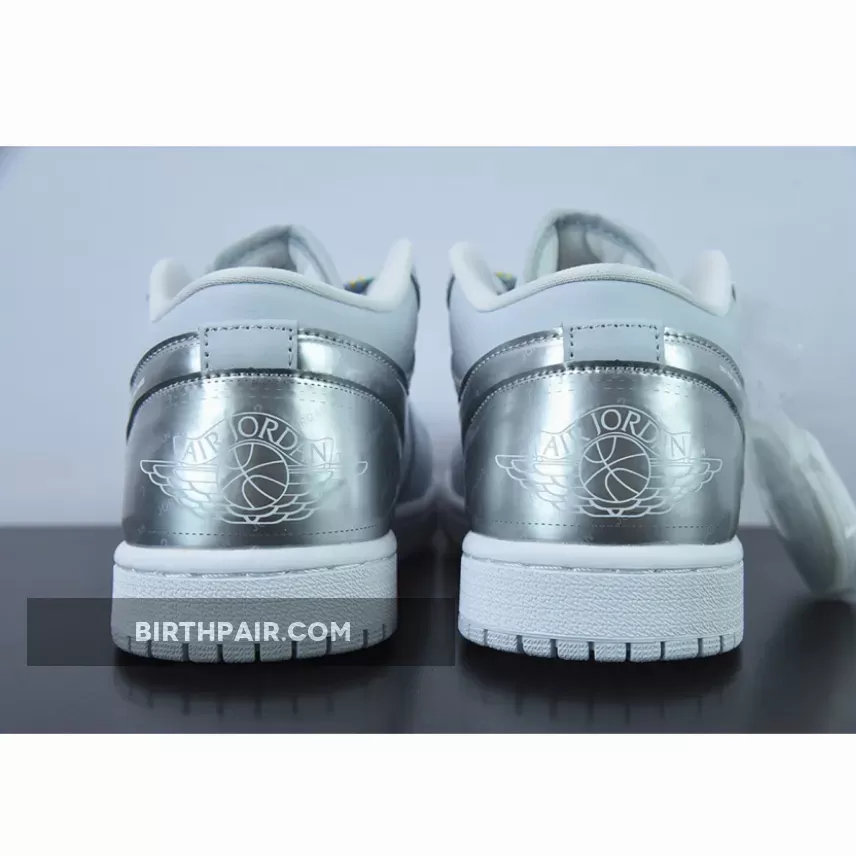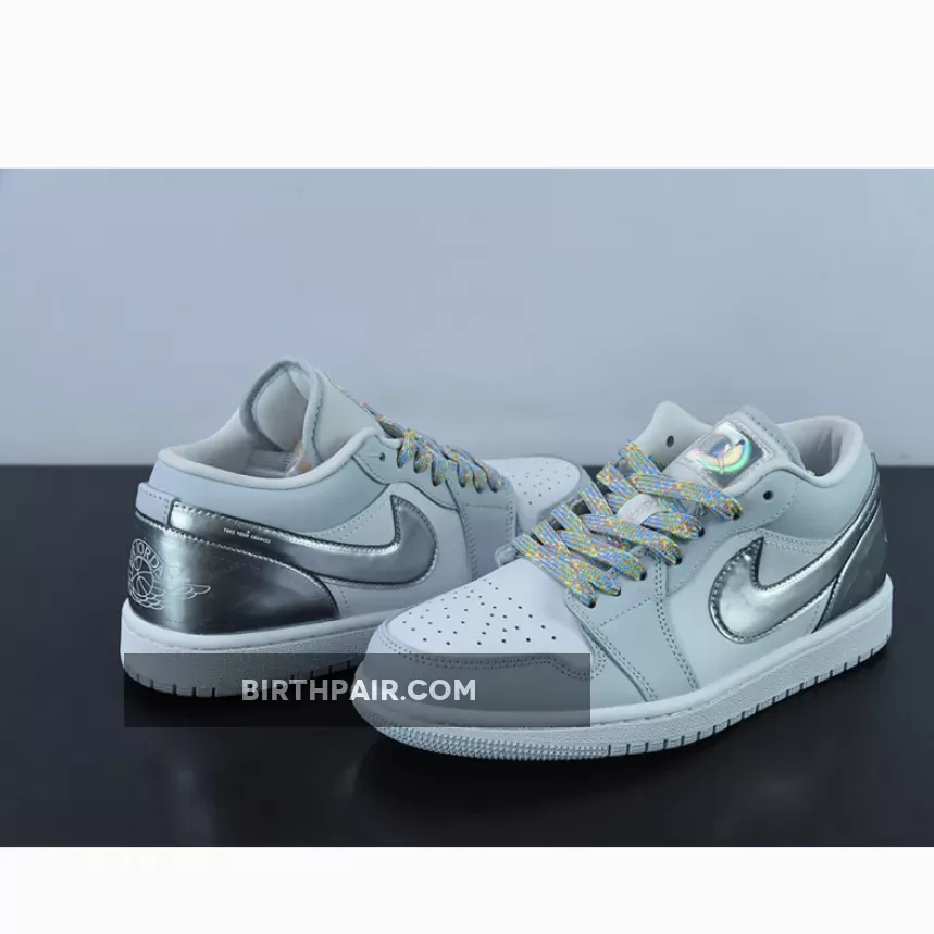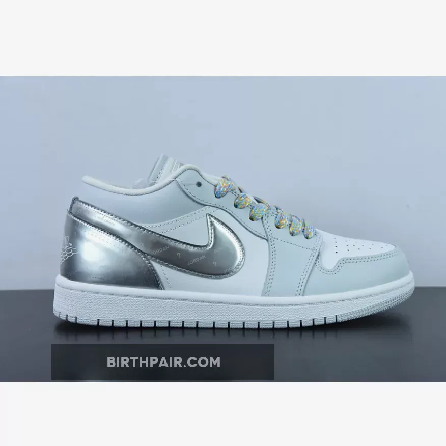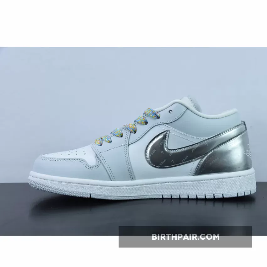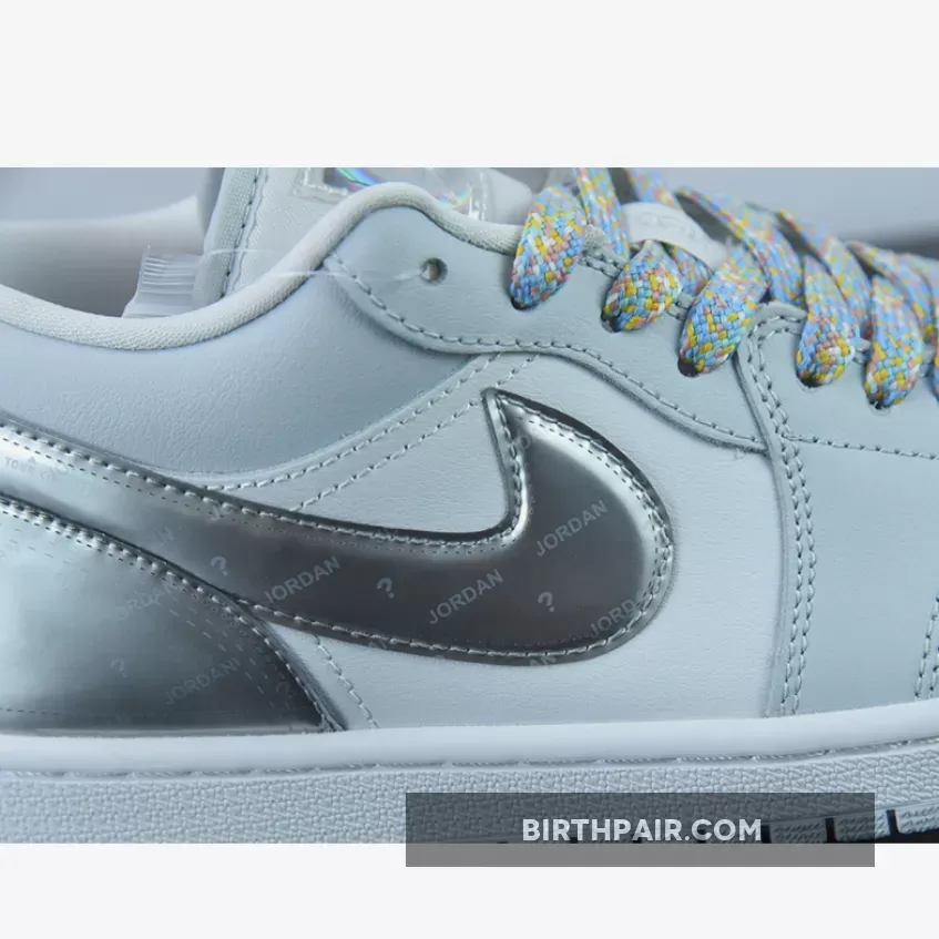 Tear-away kicks have been gaining traction over the past couple of months, and now the Air Jordan 1 Low is the latest model to get the treatment. Originally arriving in shades of metallic silver, grey and white, the Air Jordan 1 Low “Tear-Away” continues to play on the metallic theme underneath its chromatic exterior. Starting off with a crisp white base and super-clean light grey overlays, the “Tear-Away” AJ1 sees metallic detailing dress the Swoosh and heel panel. Peering closely at these panels, Jordan Brand seem to make no secret that something lies underneath, with the words “take your chances” printed on the Swoosh, and tiny printed question marks printed all over the panel. Peeling away this layer reveals pretty pink-nude panelling underneath, which adds an extra cute touch to the otherwise tonal make-up.