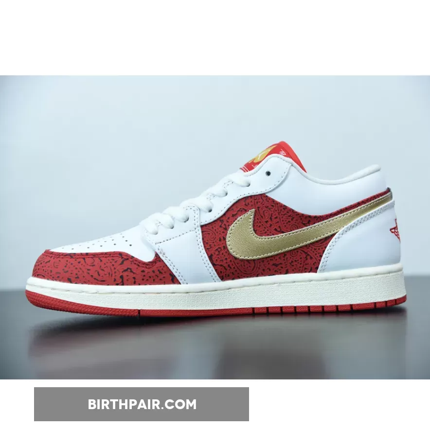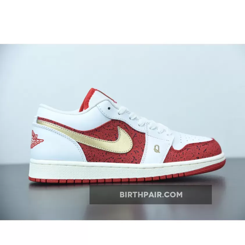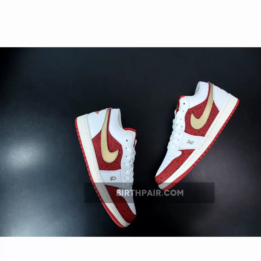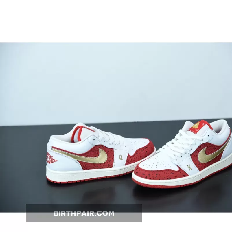If you’re still looking for new additions to your Jordan collection, then look no further as the Jordan 1 Low Spades is everything you need. Ever since Michael Jordan’s first-ever signature basketball shoes released in 1985, the Jordan 1 remained a relevant style to basketball players and sneakerheads alike up until recent years. As for the latest offering from Jordan Brand and Nike, this low-top iteration is undeniably one of the cleanest we’ve seen in a while so read on for a closer look.Working on a low-cut profile for an easy-to-style approach, these work atop a plush leather construction for a premium look. Across the shoe, you’ll see a red base accented with paisley pattern detailing then embraced with pristine white overlays that wrap around the toebox, eyestays, and rear regions including the collar for a contrasting touch. Metallic gold tones then coat the Jumpman spade-branded tongues, sidewall Swoosh logos, and the letters K and Q, which stands for the King and Queen cards, are finely embroidered onto the lateral heels alongside MJ’s wings motif at the rear to complete the theme of playing cards. Don’t forget to use our Jordan 1 size guide so you know how they fit and keep it locked in right here at Our Store Supplier for all the latest Jordan 1 release dates.