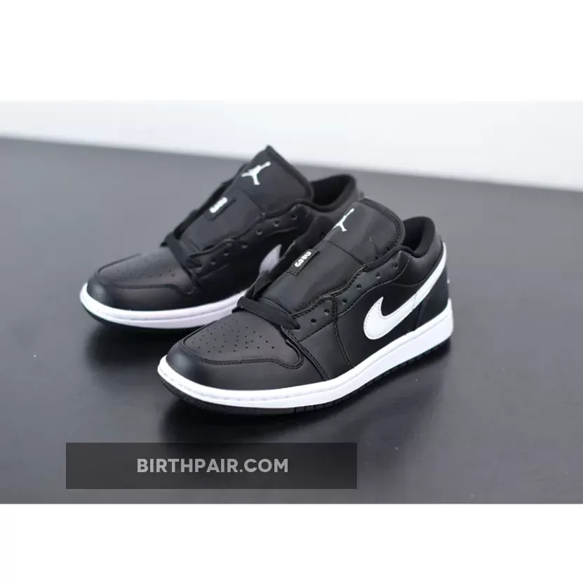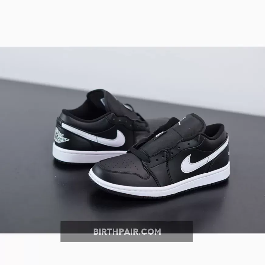 This low-top version of the Air Jordan 1 comes with Black leather across the upper while the same shade lands on the mesh tongue, laces and outsole. Following is the use of White on the branding located on the tongue, insoles, Swoosh logos, stitched Wings on the heel and midsole.