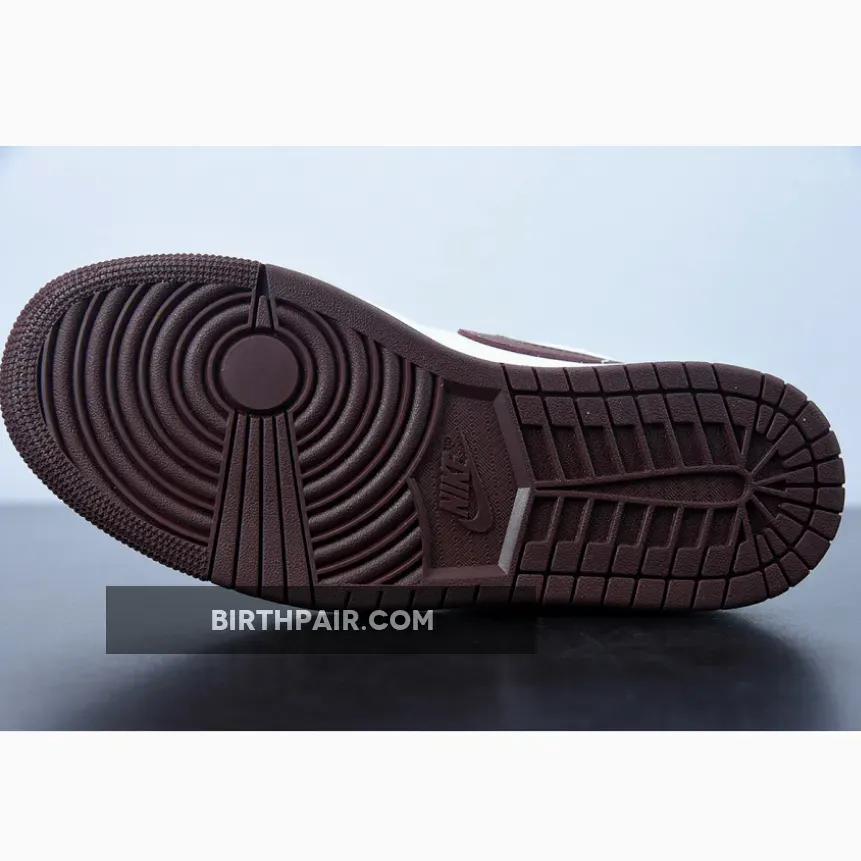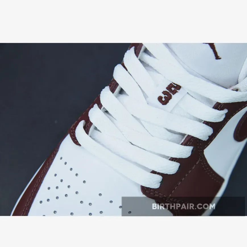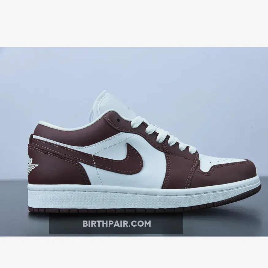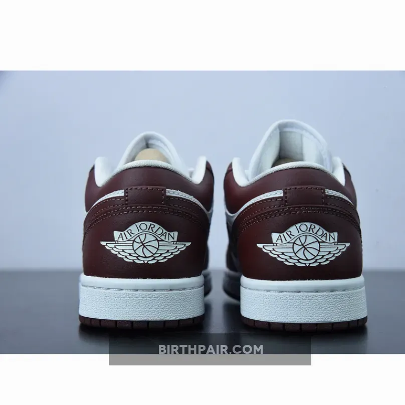 The women’s Air Jordan 1 Low ‘Bronze Eclipse’ treats the iconic model to an elemental two-tone color scheme. The low-top utilizes a leather upper that pairs a crisp white base with contrasting burgundy overlays along the forefoot, collar and heel. Color-matched accents include ‘23’ lace keepers and a Jumpman icon embroidered on the white nylon tongue. A classic Wings logo decorates the sneaker’s back heel. A rubber cupsole, complete with a Nike Air unit encapsulated in the heel, anchors the low-profile silhouette.