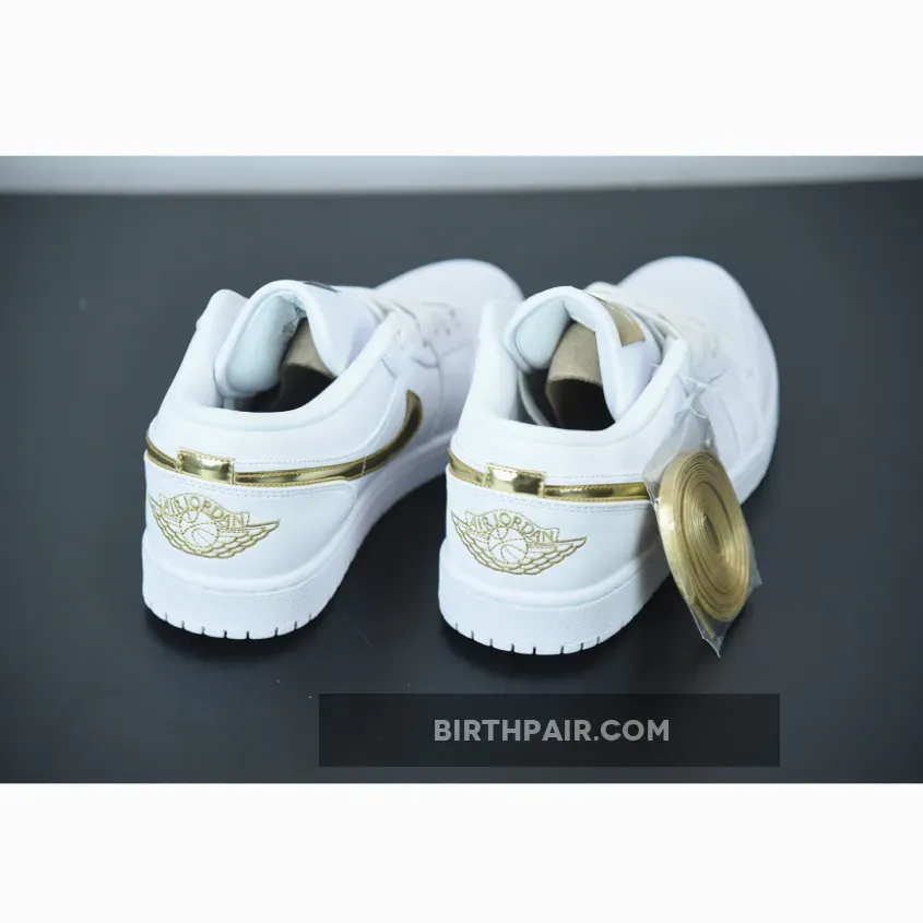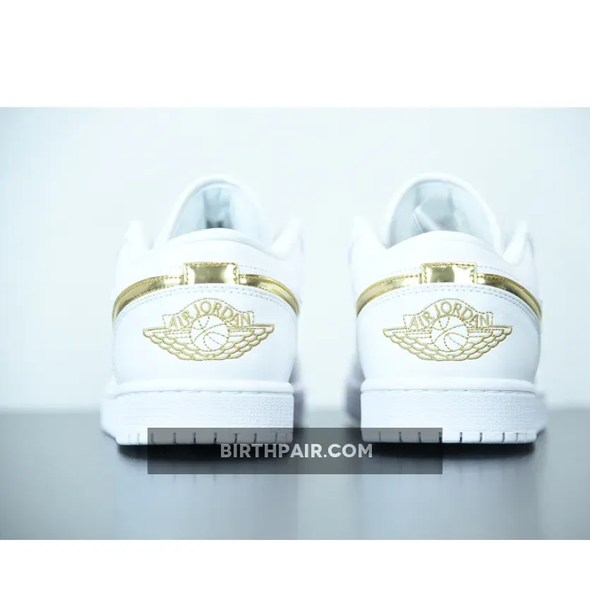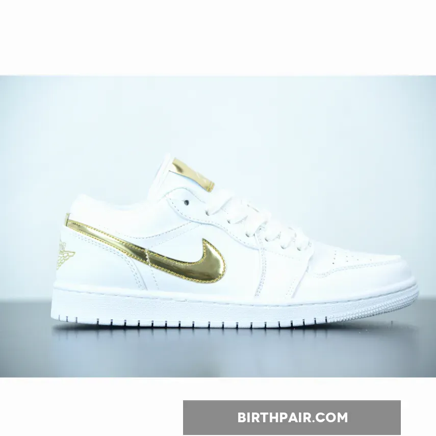 The Jordan 1 Low White Metallic Gold is a fresh new low-top Jordan 1 variant that’s set to make an entrance to the market soon. The Air Jordan 1 first launched in 1985 as Michael Jordan’s first-ever signature sneaker, and launched in high, low and mid-top renditions, with all three still as popular as ever today. Crafted from premium-quality tumbled leather throughout, these AJ1’s have an instant luxury feel to them. The classic panelled design looks better than ever, with metallic gold Nike Swooshes running across each side, and iconic details such as the perforated toe box also making an appearance. The Jumpman logo is embroidered onto the tongue, while the Jordan Brand wings logo is featured at the heel. If you’re looking for a fresh pair of classics then look no further.The Nike Air Jordan 1 Low White Metallic Gold is set to launch later on this year, so keep it locked right here at Our Store Supplier for all the latest updates as we receive them.