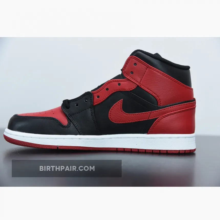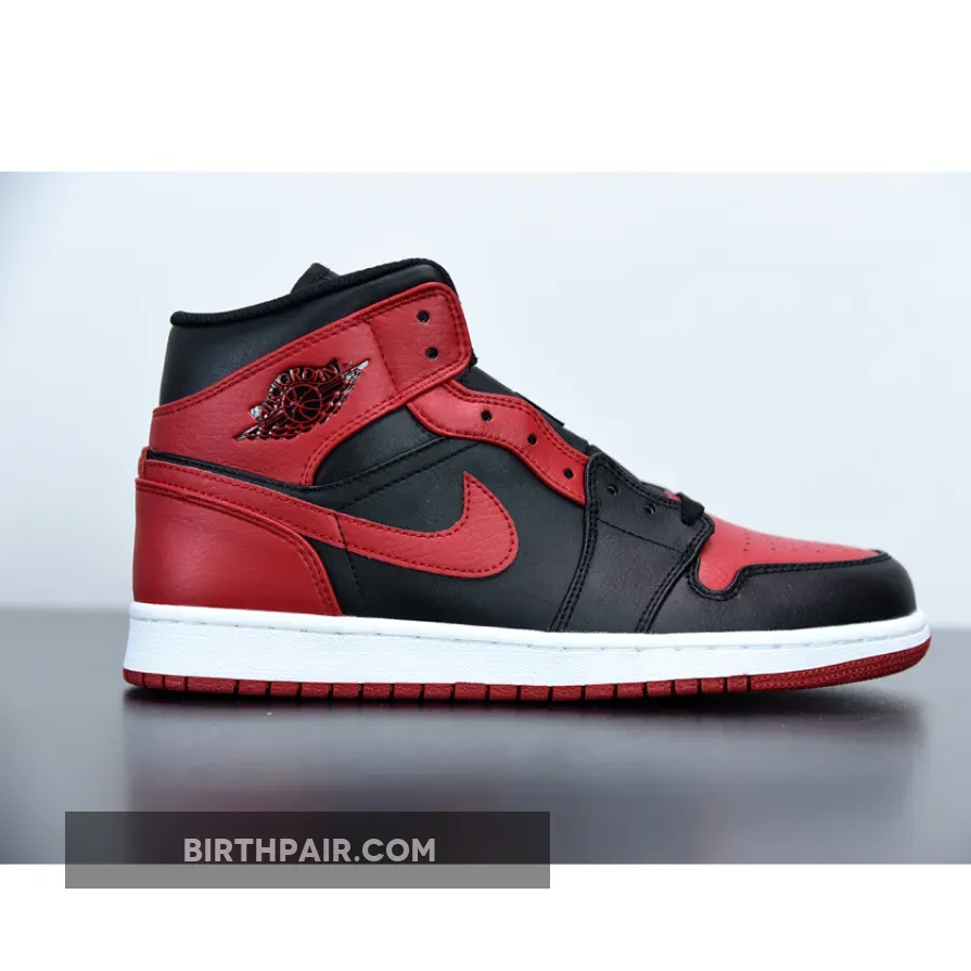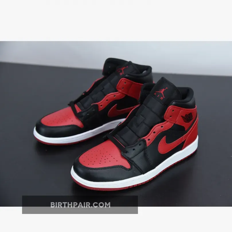 This offering of the Air Jordan 1 Mid features the classic Black and Red leather build with extra Red added to the upper eyestay. Jumpman tongues, Black Wings logo atop a White midsole and Red rubber outsole completes the design.