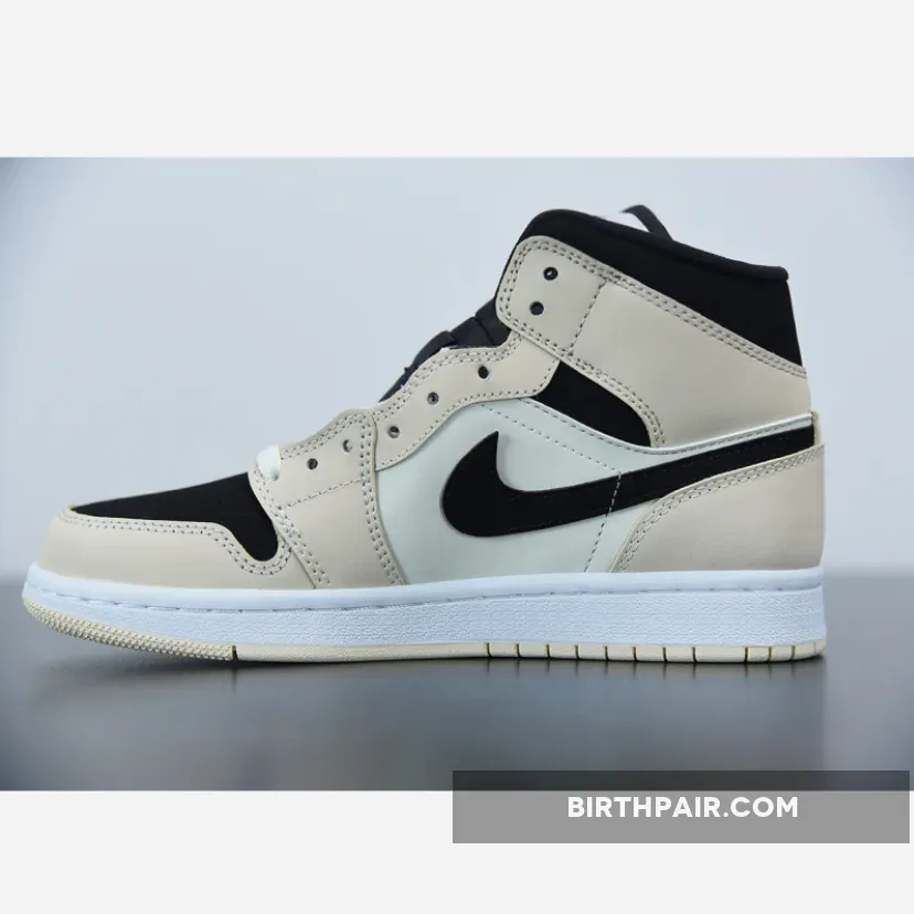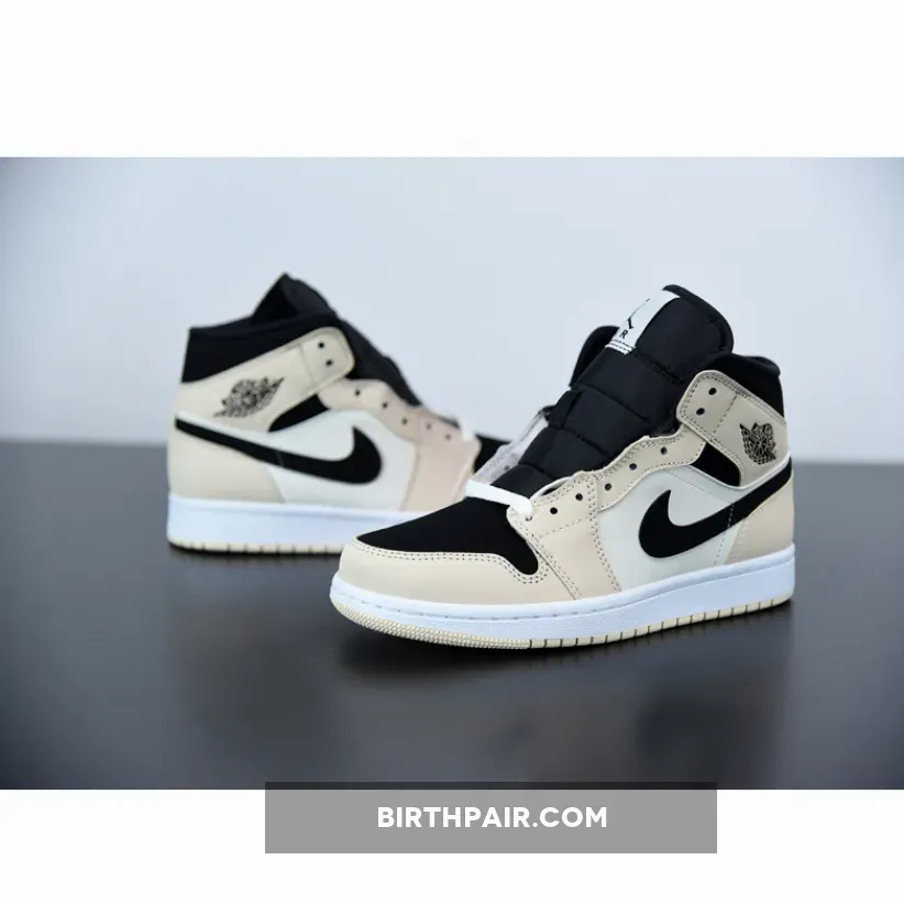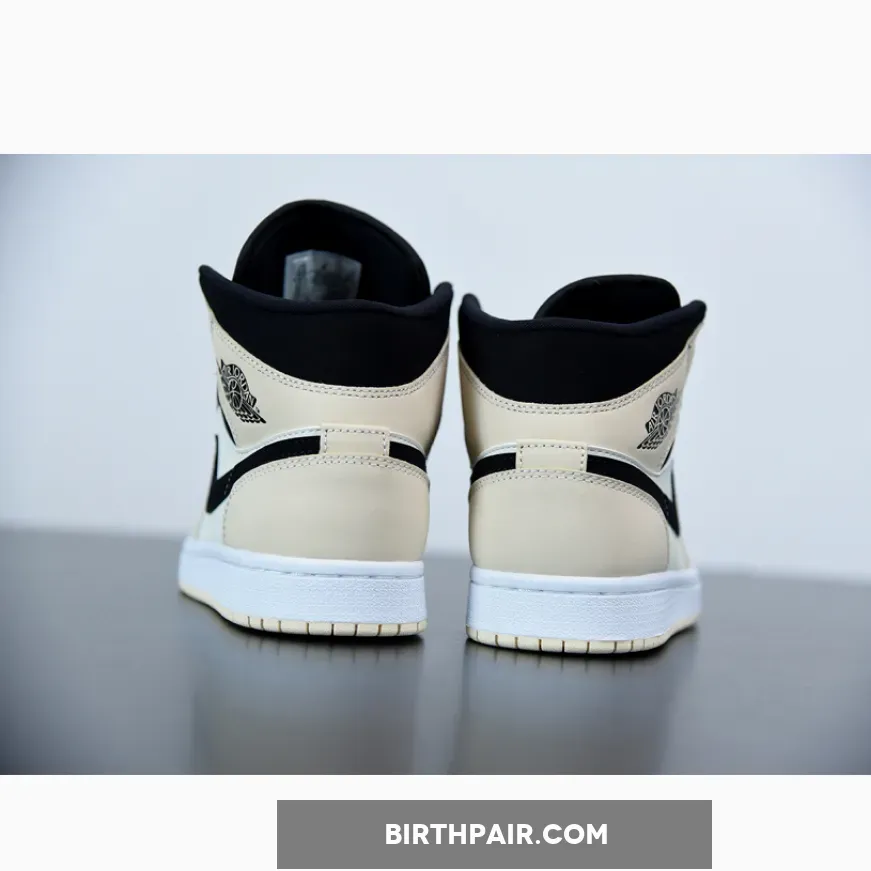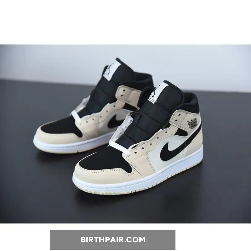 Jordan 1 Mid are clad in black and faint yellow and orange. The latter two hues take over the Jordan 1‘s signature overlays, with the lighter of the two most prominent at the midfoot and laces. Black interrupts the two-tone color scheme at the profile Swooshes, collar panels, lateral ankle “ball-and-wings” insignia, tongue, and toe box, in an almost-reverse arrangement of a forthcoming “Arctic Orange” Jordan 1 Low.