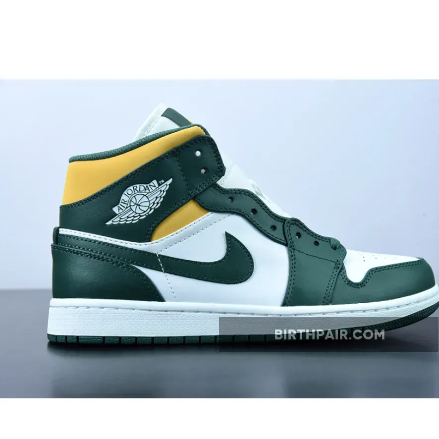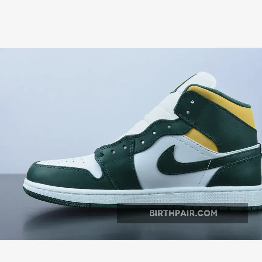 It’s the fresh colourway for us. The Air Jordan 1 Mid Green Yellow is the perfect pair for subtly brightening up your looks. This spring-ready pick starts with a smooth white leather base that’s designed with lush green leather overlays. Furthering the perky vibe of this Air Jordan 1 is the sunshine yellow padded ankle intertwined with the green ankle collar.