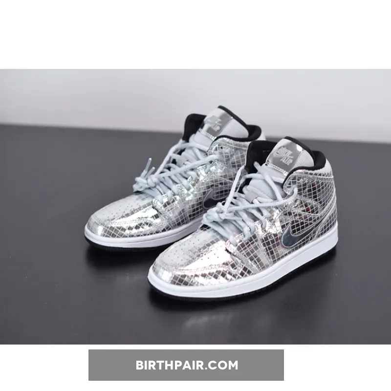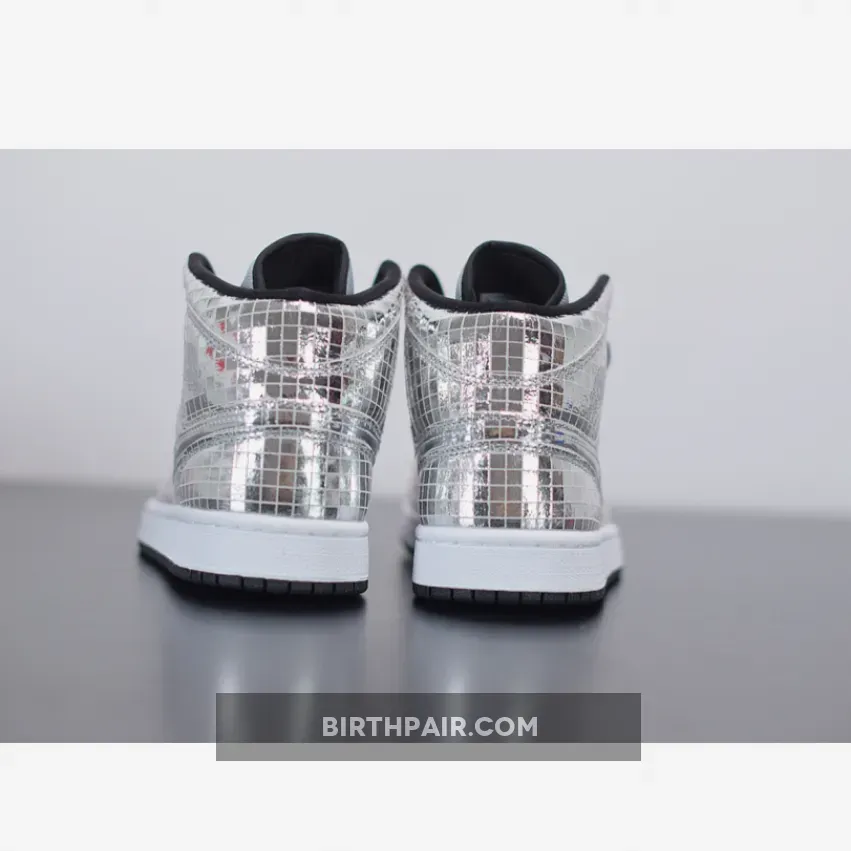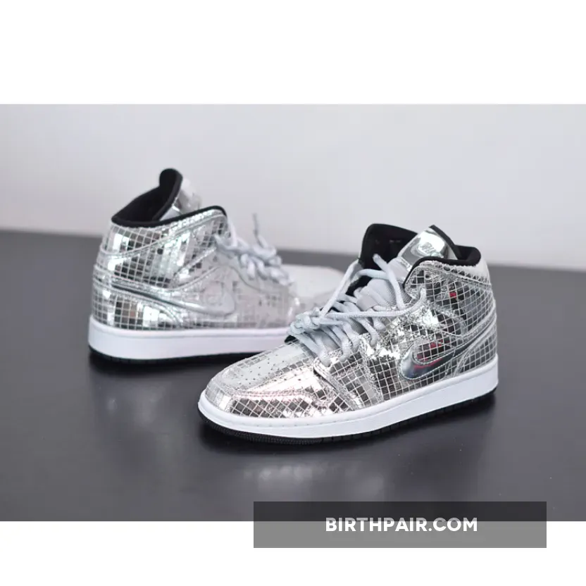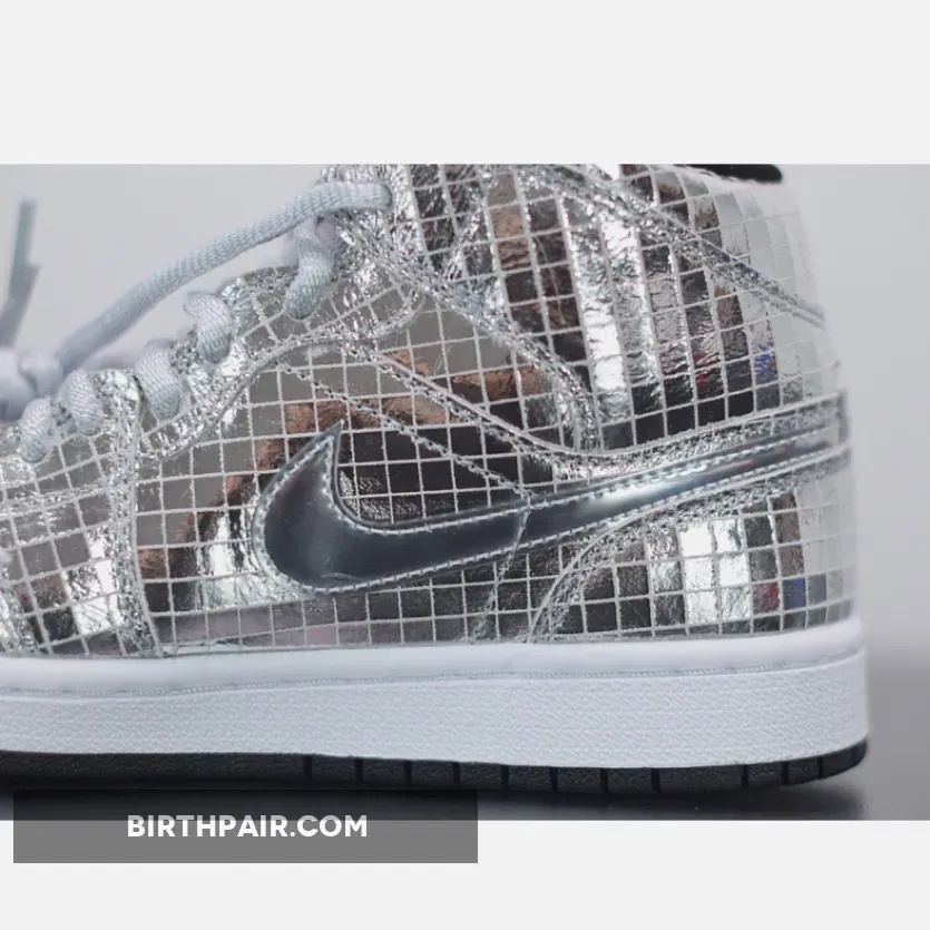 black white and silver jordans #black white silver jordan 1 #disco ball shoes #jordan 1 disco ball #disco ball nike #mirror ball shoes #womens disco #disco ball jordan #air jordan disco ball #disco ball sneakers