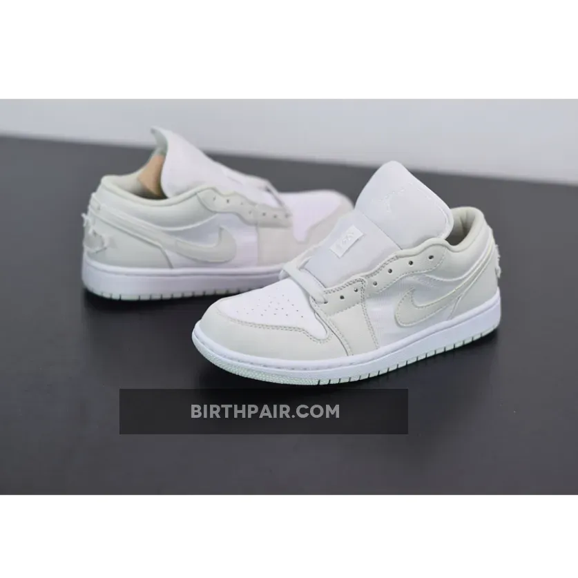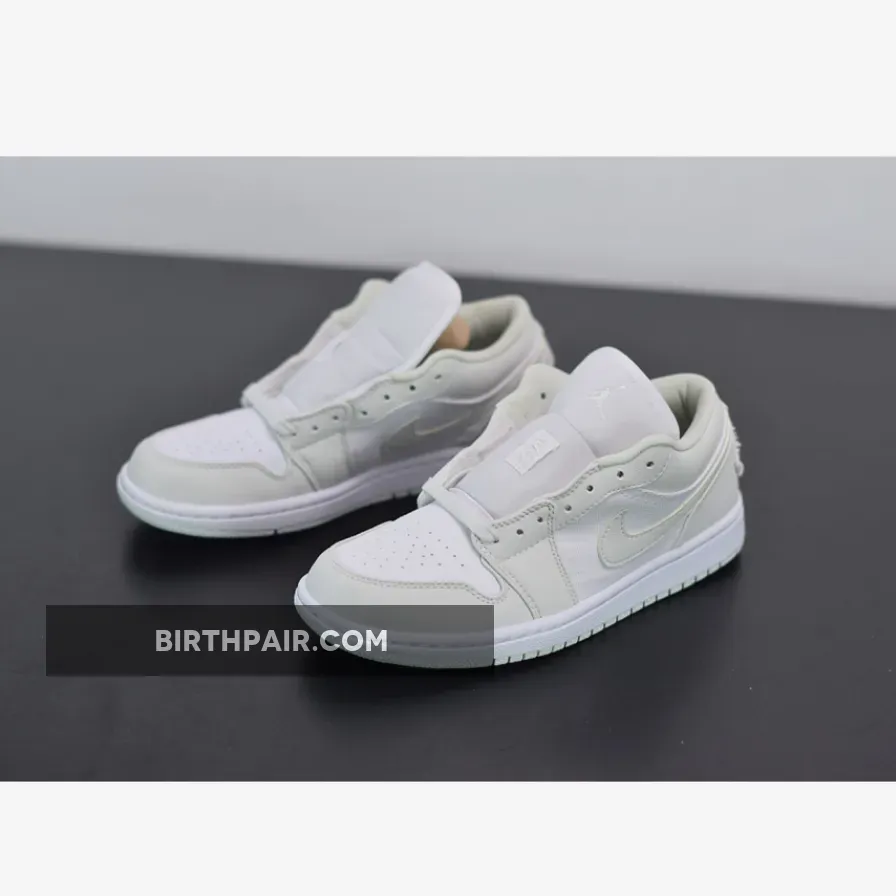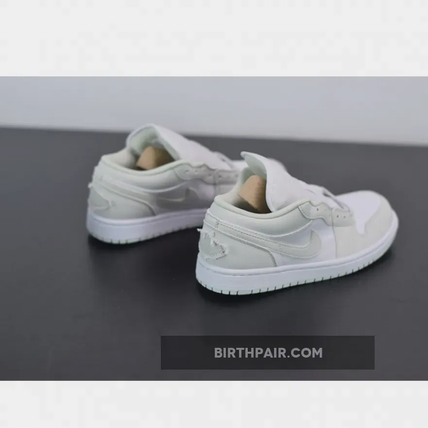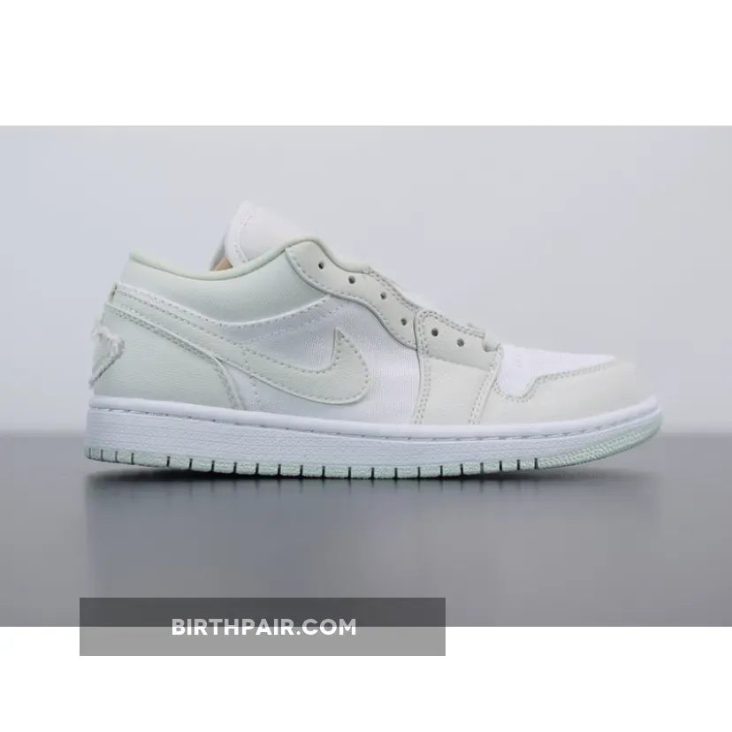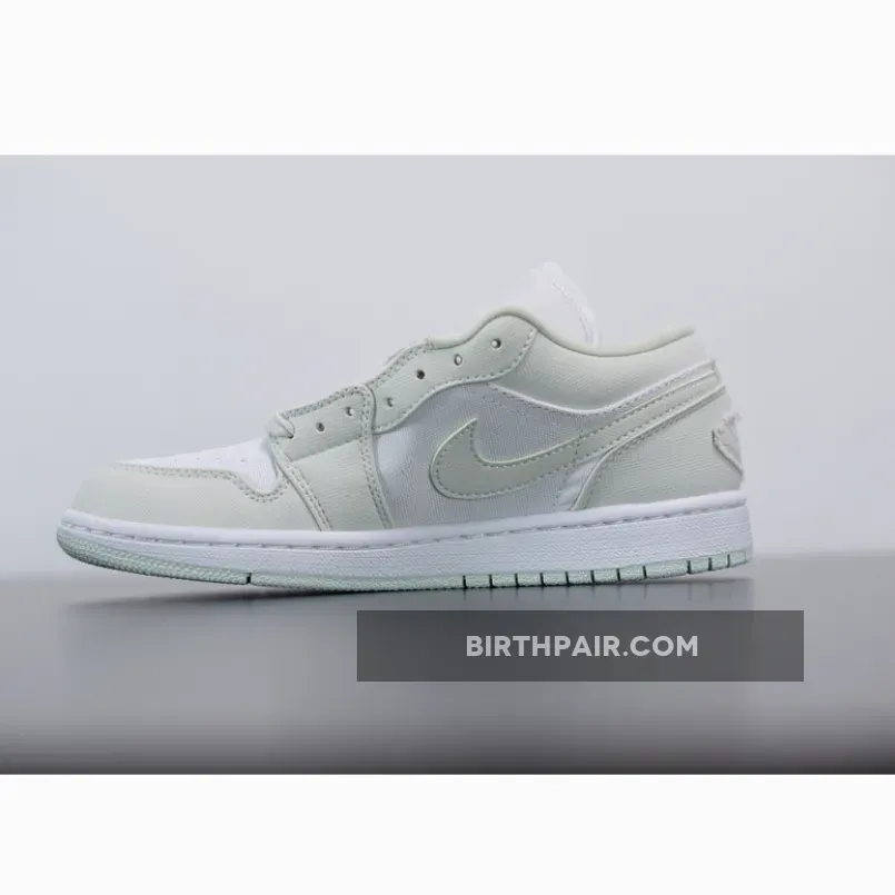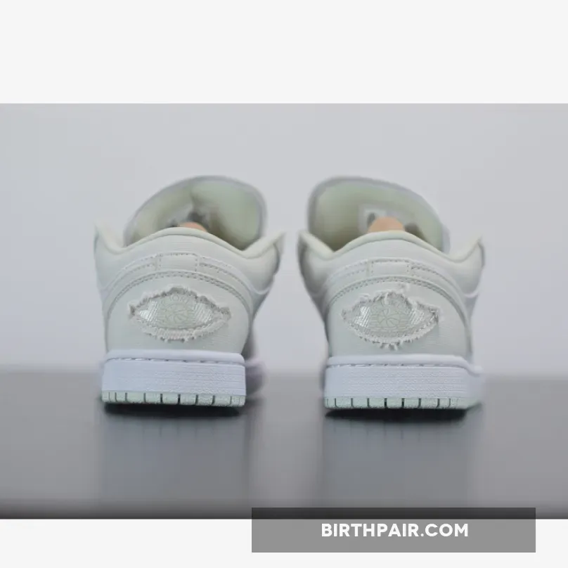 Recently surfaced on the Jordan 1 Mid, the pastel-green hue covers all of this pair’s canvas twill overlays: mudguards, quarter panels, profile Swooshes, and heel swathes. Everything else uptop, save for Jumpman, “23” and frayed ball-and-wings logos, are done in “White.” Underneath, the Spring-ready vibes continue as colorless midsoles are livened up with “Spruce Aura” outsoles, just as on the aforementioned AJ1 Mid. However, given the Low’s shorter height, it’s unquestionably better-suited for the warmer months than its taller counterparts.