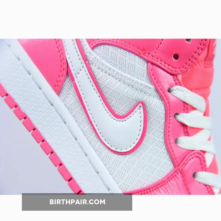 This offering of the Air Jordan 1 Mid comes constructed in a leather build with mesh tongues and lining. Its upper features light and dark shades of Pink, while White is used on the tongues, side panels, and midsole.