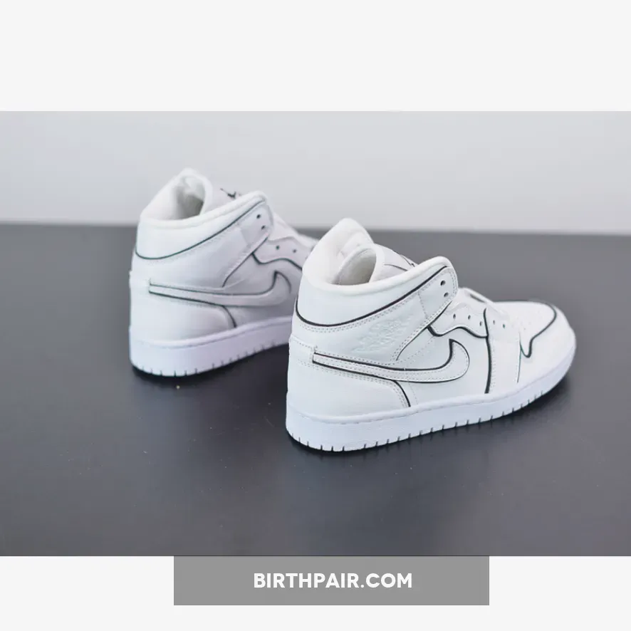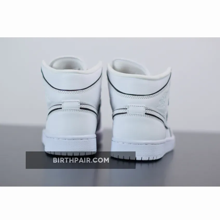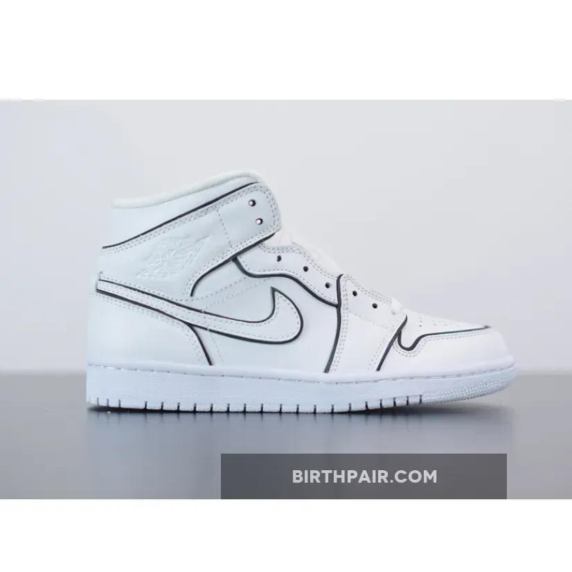 This release of the mid-top Air Jordan 1 features a clean White leather upper with signature perforated holes on the toe area and matching tonal Wings logo on the ankle.