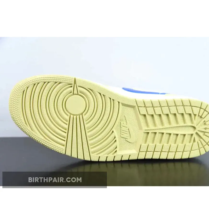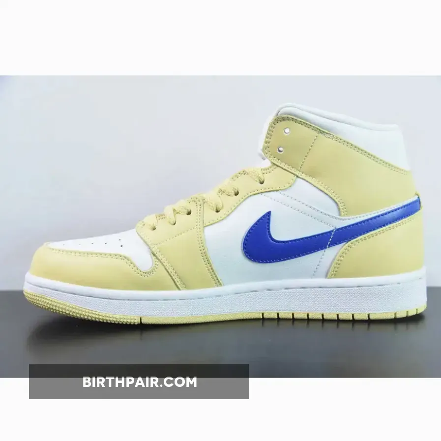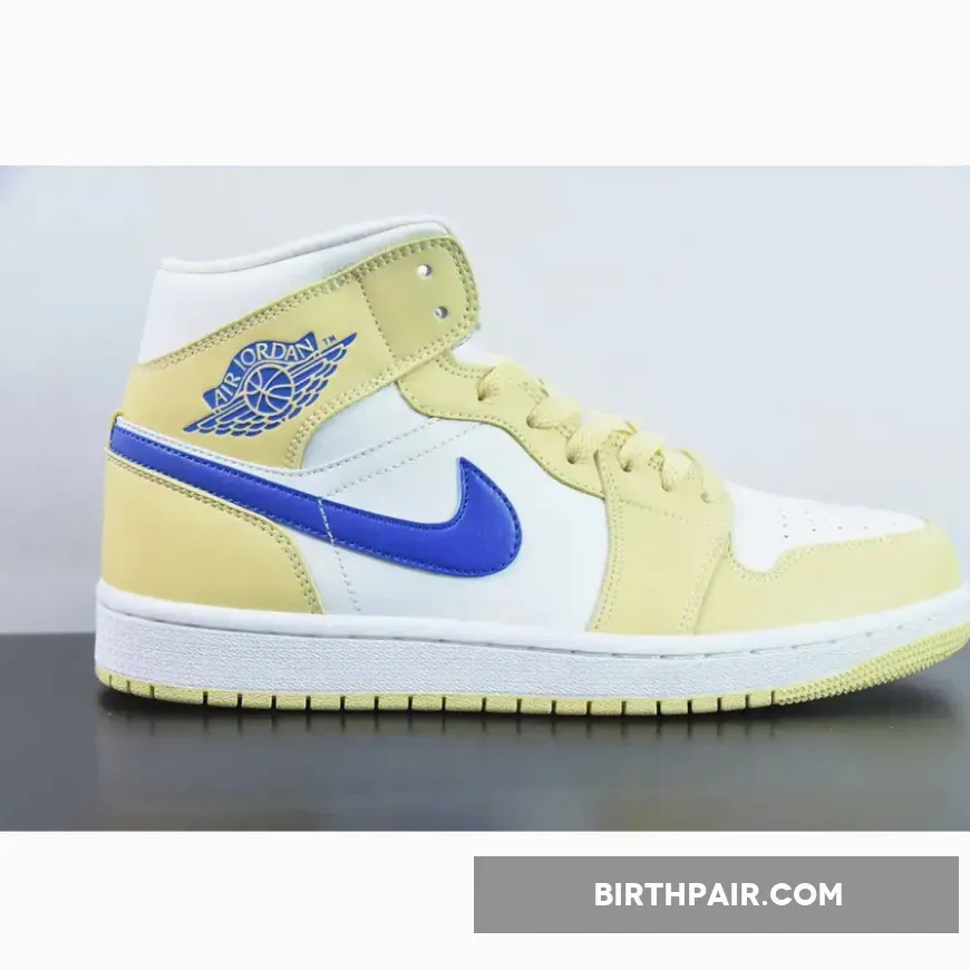 The Jordan Brand’s first signature made just for Michael Jordan, the Air Jordan 1, has a new offering in muted yellow with pops of arresting blue. Meet the Air Jordan 1 Mid Lemon Wash.
