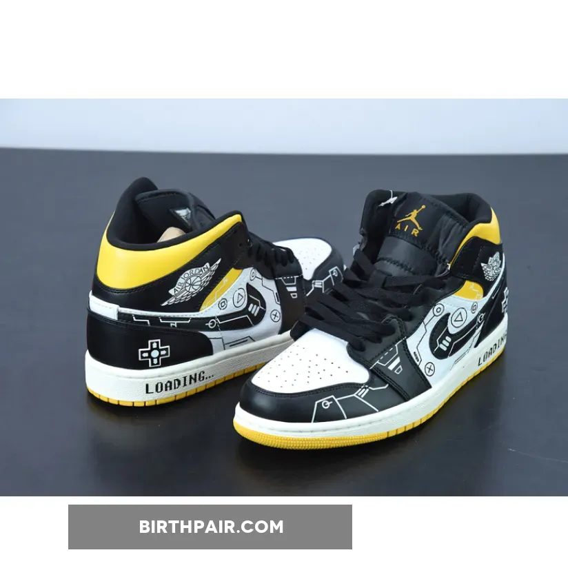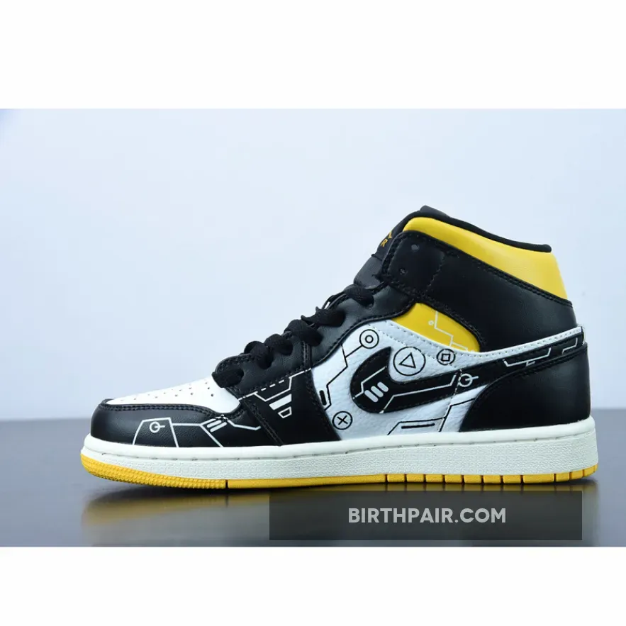 black white yellow jordan 1 #custom jordan 1 mids #jordan 1 green white yellow #black white and yellow jordan 1