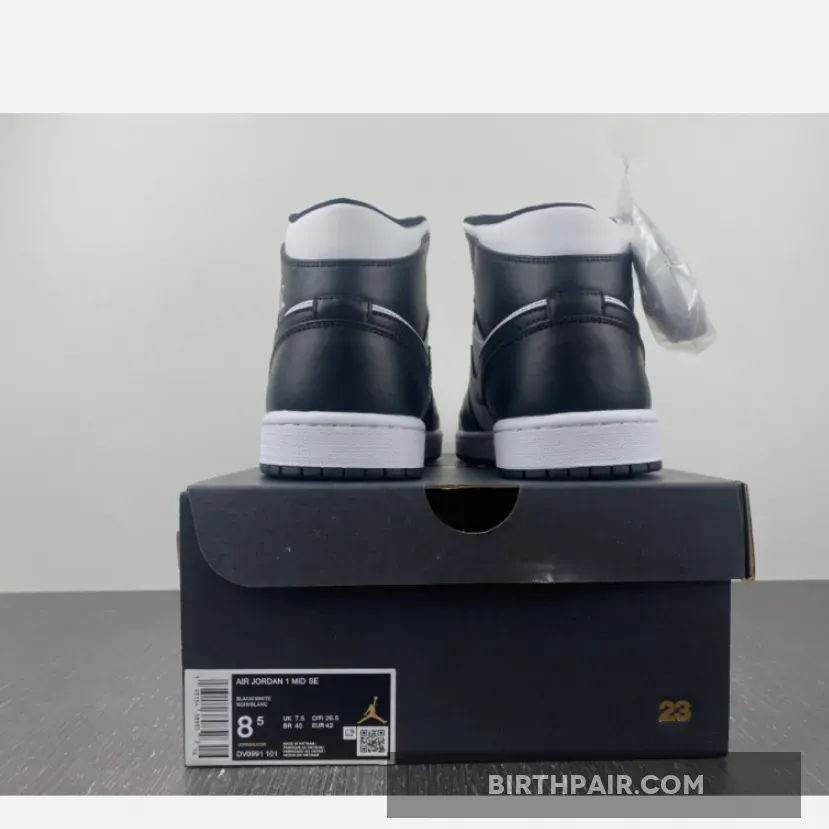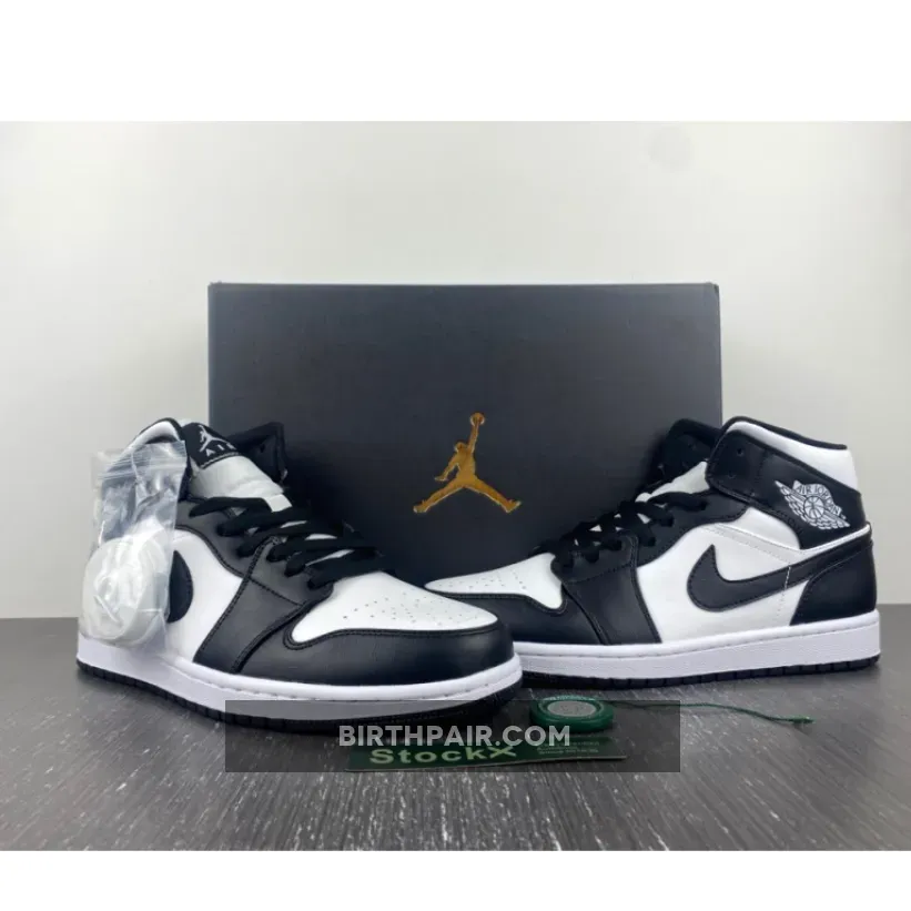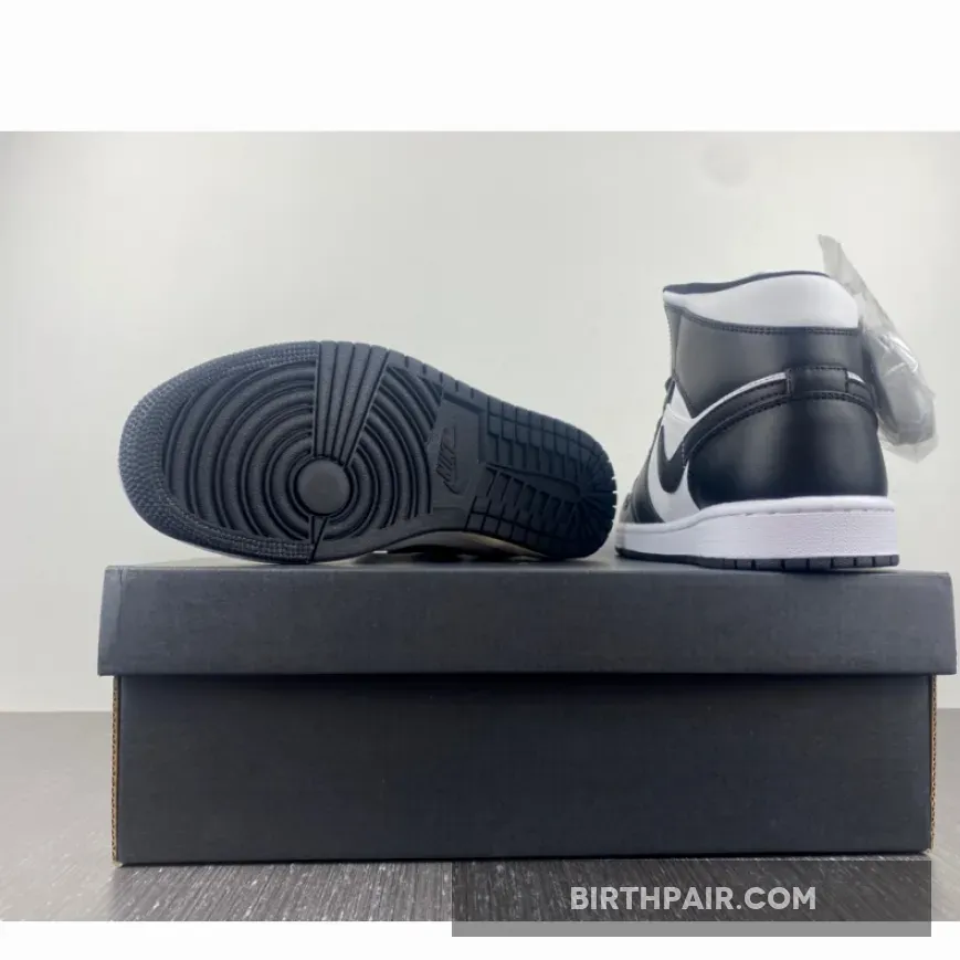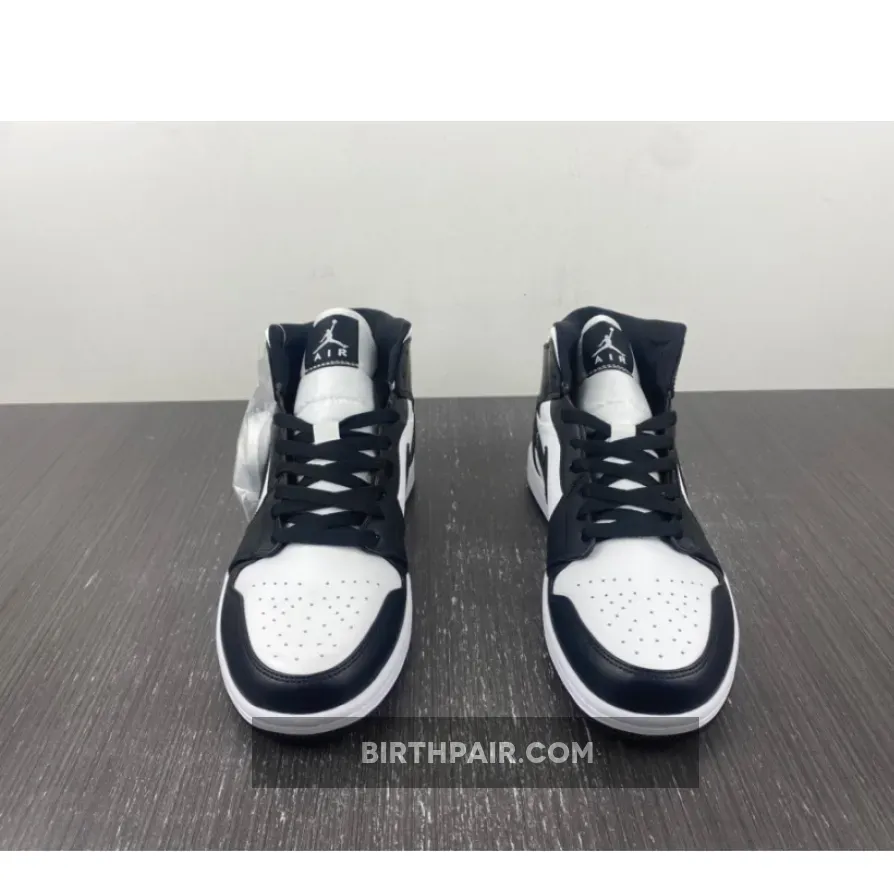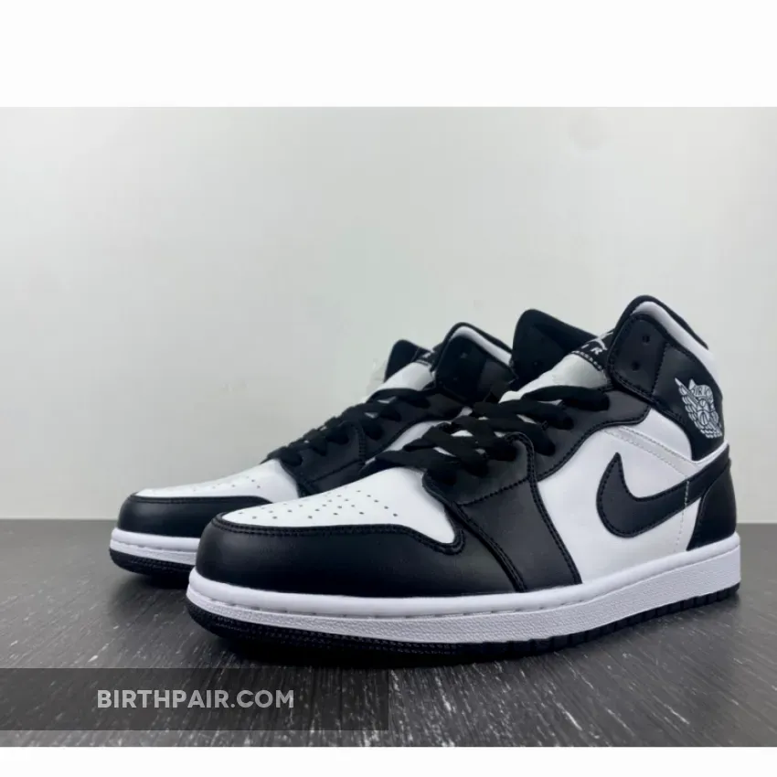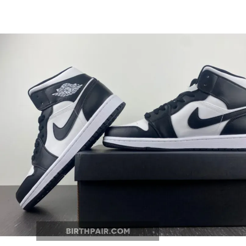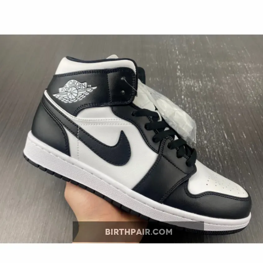this specific Air Jordan 1 Mid stays true to Panda blocking, with white uppers and nylon tongues engulfed by a sea of bold black overlays.The signature Nike Swoosh cements itself in Black, while the Air Jordan Wings appear in White on the ankle collar.