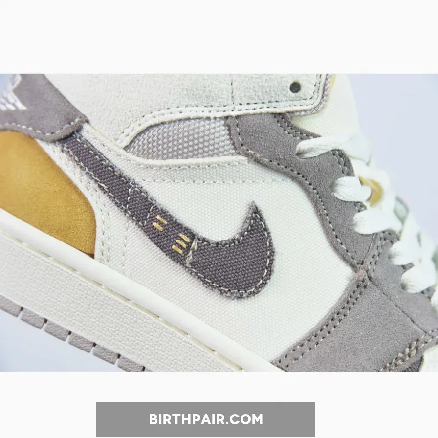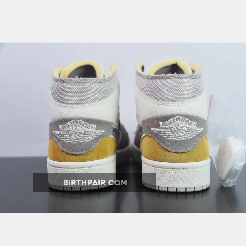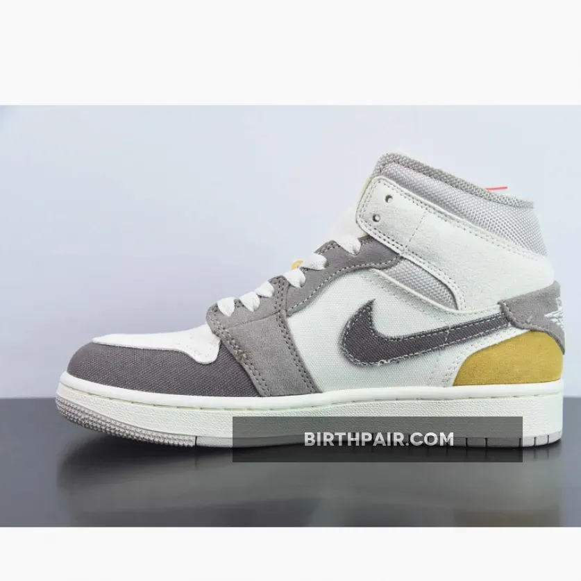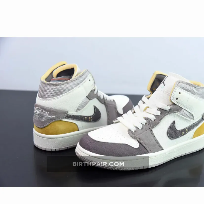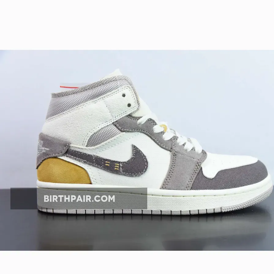 One of the most unique colorways to hit Michael Jordan’s mid-top flagship, this Air Jordan 1 Mid features sail suede across the sidewalls and toebox, while the ankle and front are dressed in a taupe haze woven canvas. The collar flaps are dipped in a clean muslin hue, and a dash of celestial gold adorns the heel for a pop of contrast that’s sure to turn heads. Color-matched along its rough cut Swoosh, the back tab is flipped downwards covering a sliver of the vibrant tan suede heel counter. Rending a stitched-on ensemble at its vamp and midfoot panel, ever so light creams envelop the base in tandem with its canvas tongue and laces for a lightened appreciation complimenting the tonal scheme.