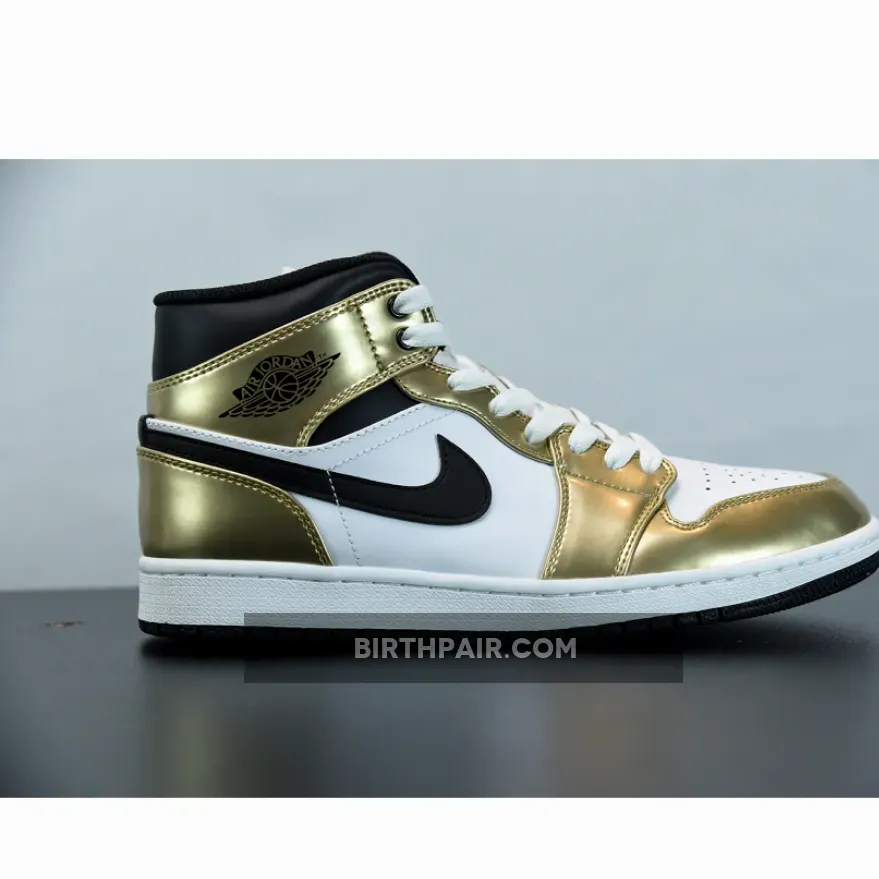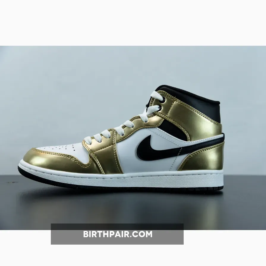 The Jordan 1 Mid SE Metallic Gold is a fresh new mid-top version of the legendary Air Jordan 1 model that first launched to the masses all the way back in 1985. Designed by Peter Moore, the AJ1 was Michael Jordan’s first ever signature sneaker, and launched in low, mid and high-top renditions. The Air Jordan 1 remains one of the most popular sneakers ever even today.Crafted from shiny patent leather, the AJ1 showcases a neatly panelled upper that’s decked out in a metallic gold and white colorway. Nike’s signature Swoosh logo runs proudly across the lateral and medial sides, while the wings logo and Jumpman logo are present at the collar and tongue respectively. Whether you’re a seasoned Jordan collector or just getting into the brand, there’s no denying that these are worthy of a place in your collection.