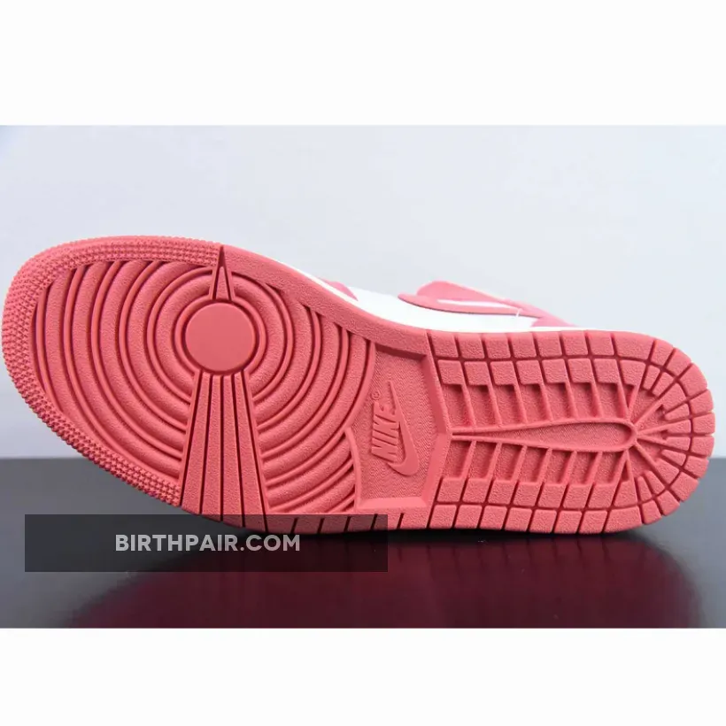 This mid-cut AJ1 has an all-smooth-leather upper with pure white as the base and a candy pink colour on the toe cap, the mudguard, the eyestay panel, the collar flaps, the signature profile Swooshes on both sides of the shoe and the heel counter.