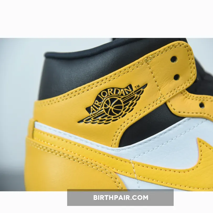 Crafted from premium leather material, the AJ1 showcases a neatly panelled upper that’s decked out in a University Gold and white colorway. Nike’s signature Swoosh logo is present as ever across the lateral and medial side panels, while the wings logo and Jumpman logo are present at the collar and tongue for a branded touch.