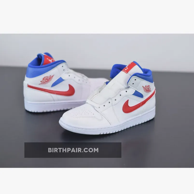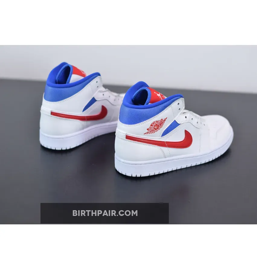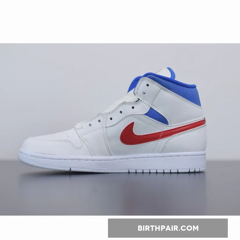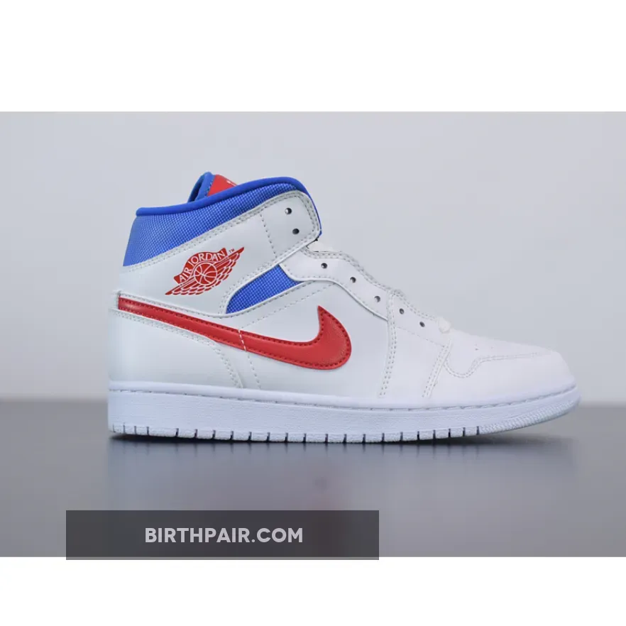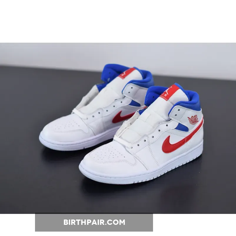 Solid colorway, comfy. Fast shipping, love ’em! Air Jordan 1 Mid White/Red Royal – perfect for celebrating.