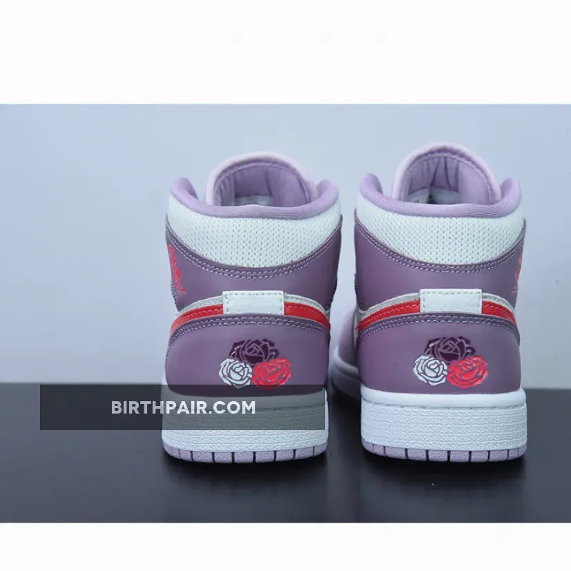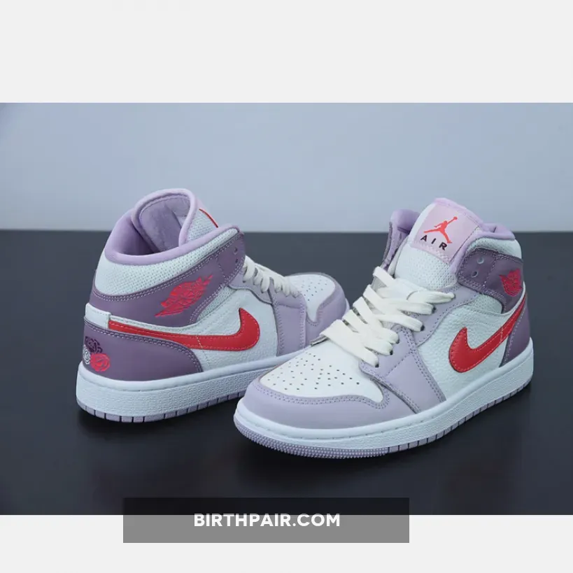 Previewed below, the Air Jordan 1 Mid Valentine’s Day comes dressed in a White tumbled leather upper paired up with matching mesh collars. Giving it that Valentine’s Day theme are the Pink leather overlays and the Red on the Jumpman branding, Wings logo and Swooshes. A special detail on the release is the trio of roses on the heels. A White midsole and Pink rubber outsole round out the main features of the sneaker.