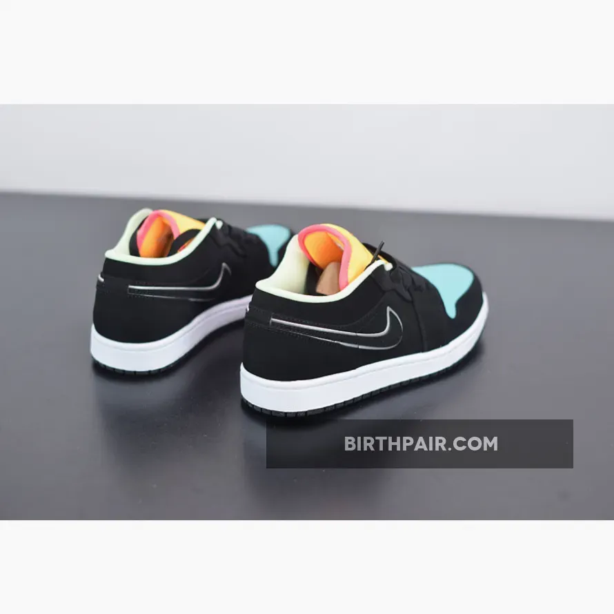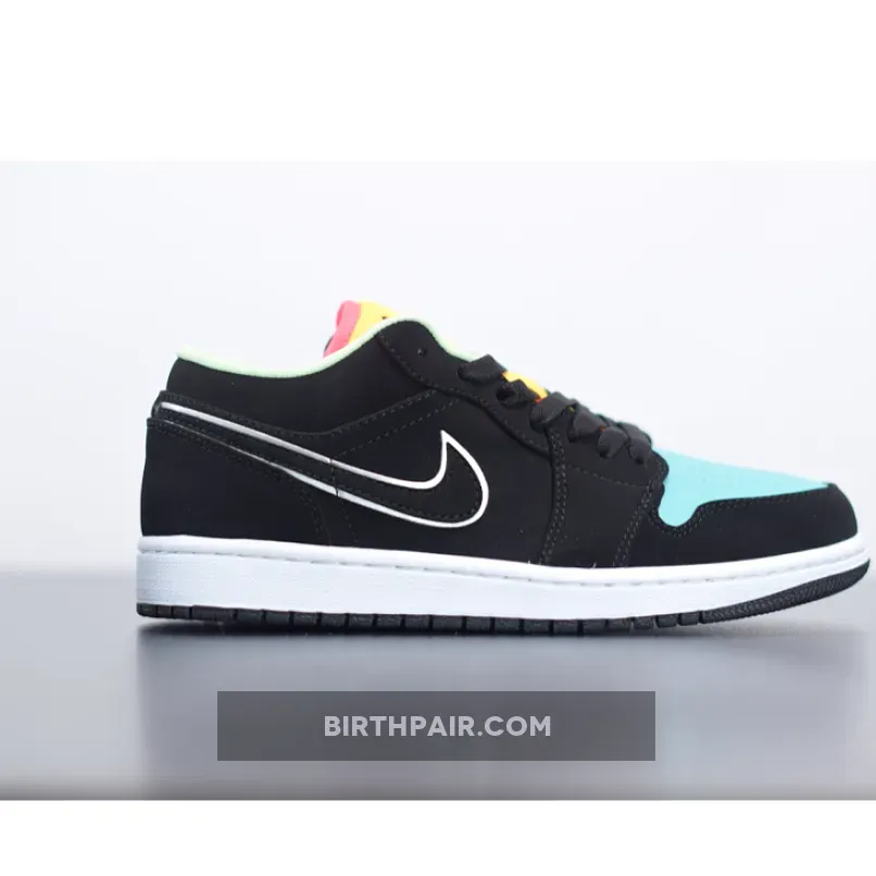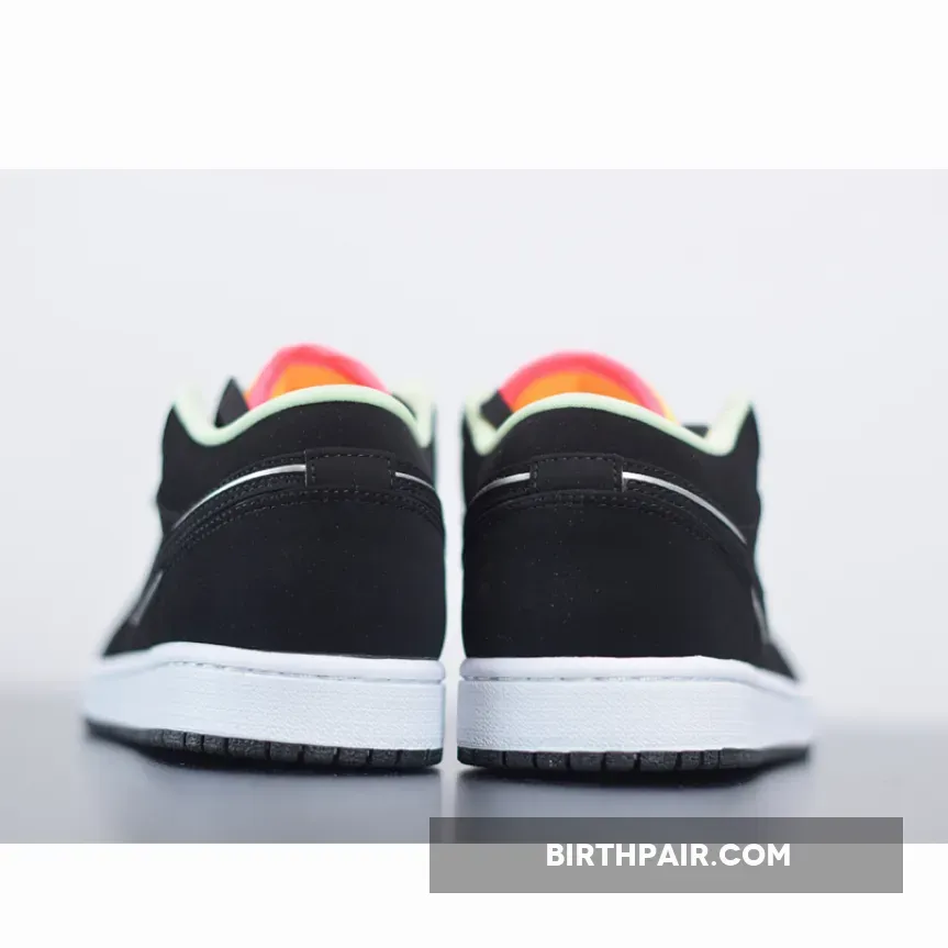 The Jordan 1 Low Black Aurora Green Laser Orange is a fresh new take on the legendary AJ1 silhouette that’s been a cult-classic with footwear fans since 1985. As Michael Jordan’s first-ever signature sneaker, the AJ1 holds huge sentimental value and originally launched in high, mid and low-top versions, with all three remaining popular today. The uppers are crafted from a blend of suede, canvas and mesh, with the colorway combining a black base layer with pops of green, orange and red for a vibrant look. Nike’s signature Swoosh logo runs neatly across both the lateral and medial sides, while a Jumpman logo is embroidered into the tongue and a wings logo onto the heel. If you’ve been searching for a versatile pair of Jordans to add to your collection then look no further, as these are certainly a valid choice.
