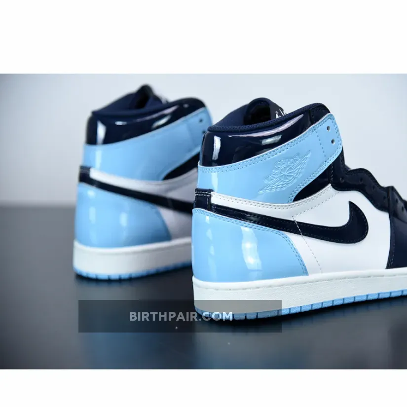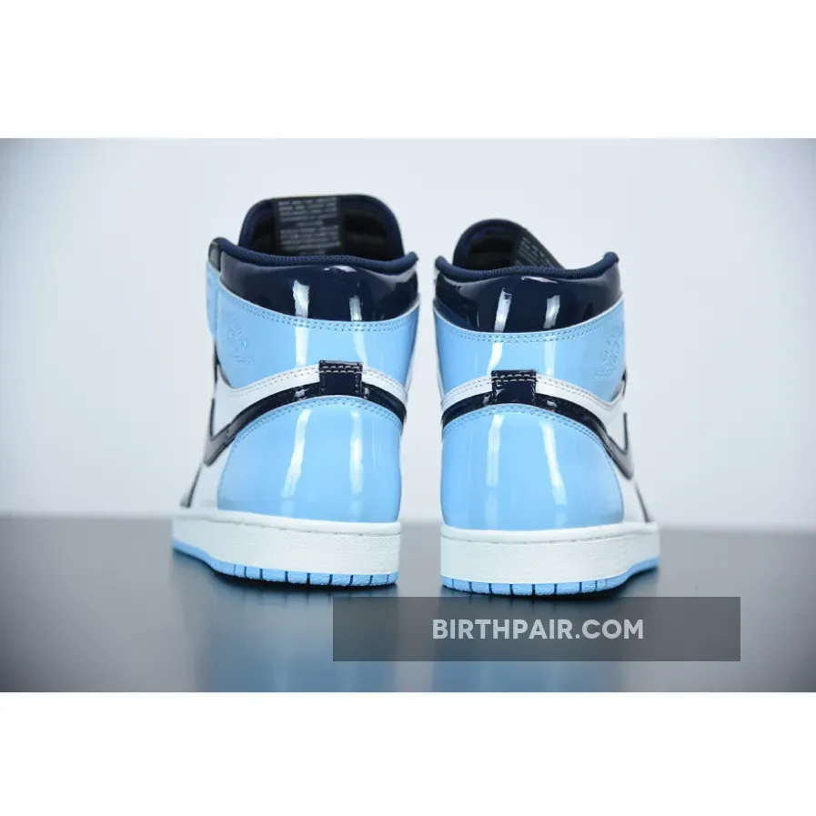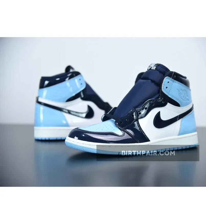 The Women’s Air Jordan 1 Retro High OG ‘Blue Chill’ features a patent leather upper in Blue Chill and white with Obsidian overlays throughout. Released February 2019, the colors are inspired from Michael Jordan’s roots in North Carolina as well as the NBA All-Star host city Charlotte.