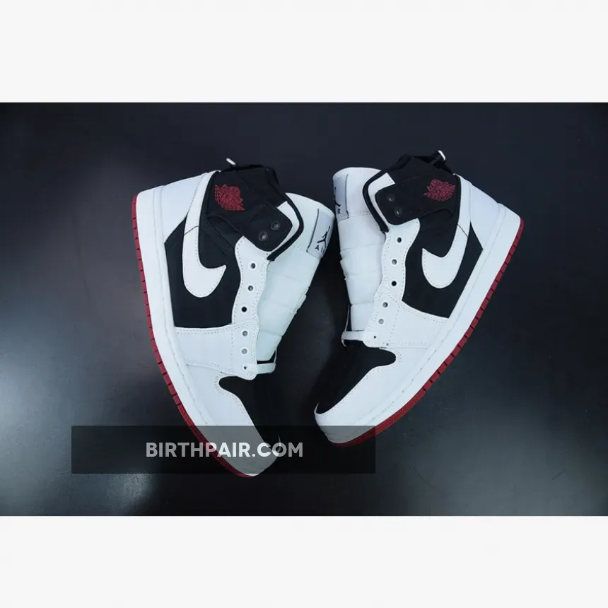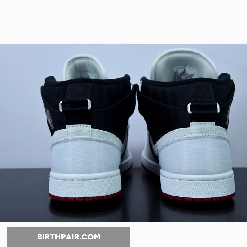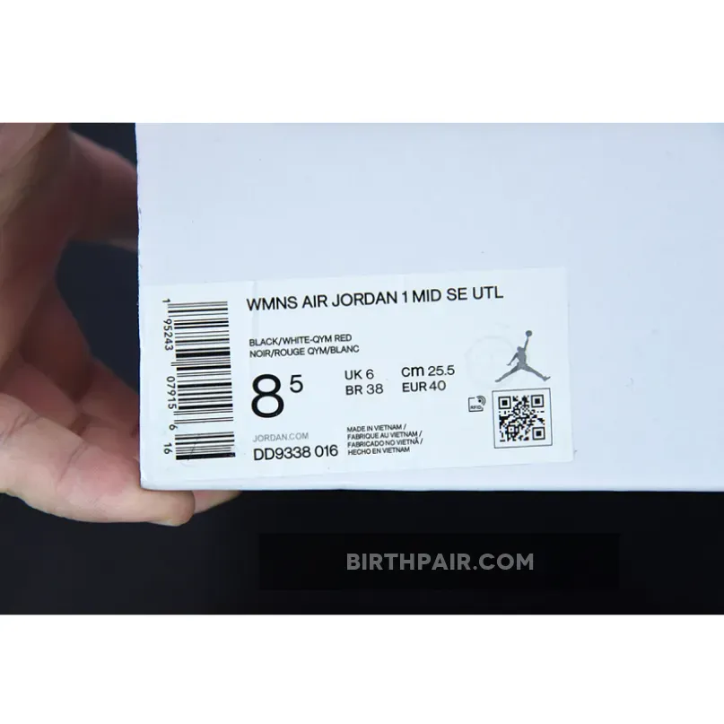 The Air Jordan 1 Mid SE Utility Canvas White Black Gym Red W features a wide blend of colors, with Gym Red, white, and black featuring as the dominant tones.