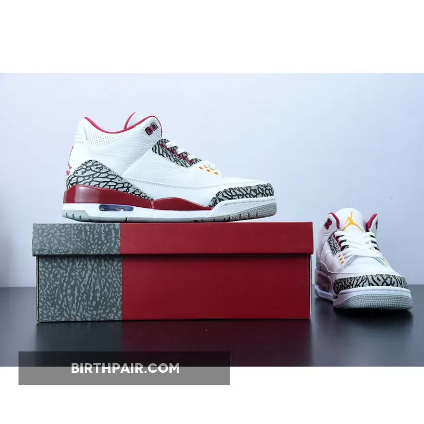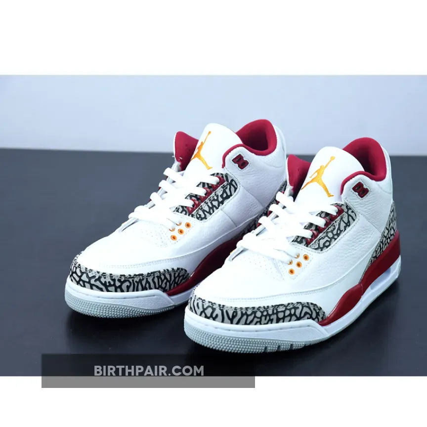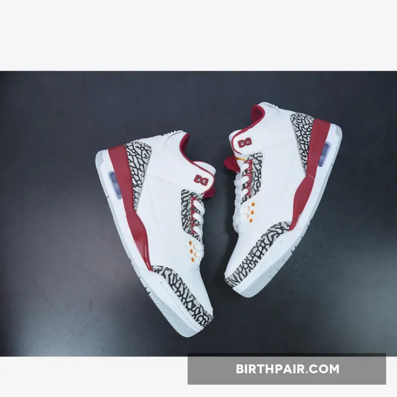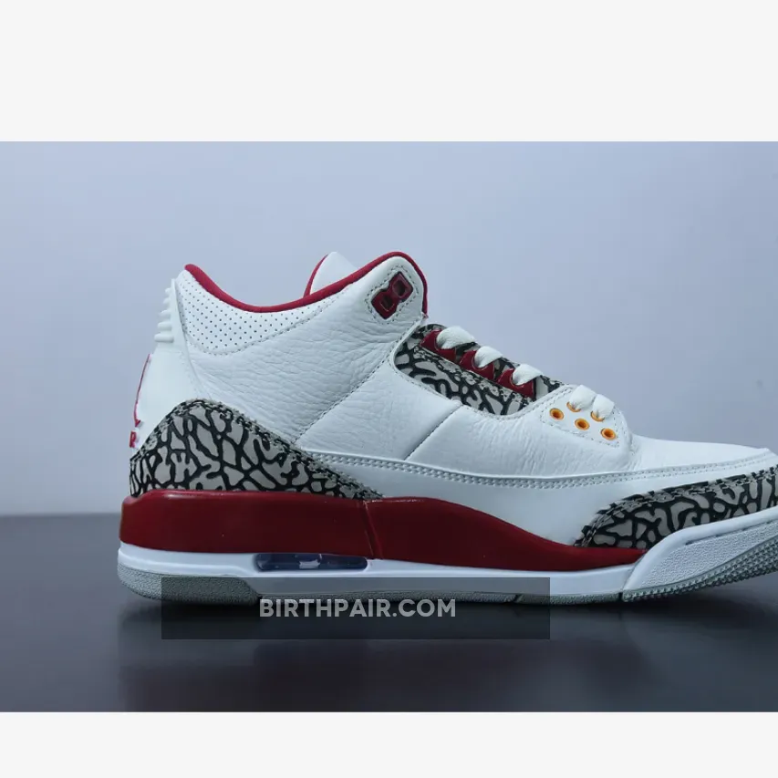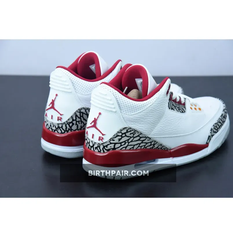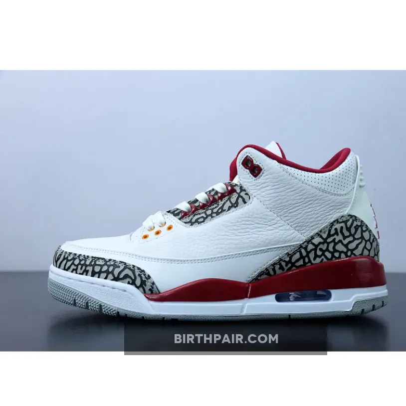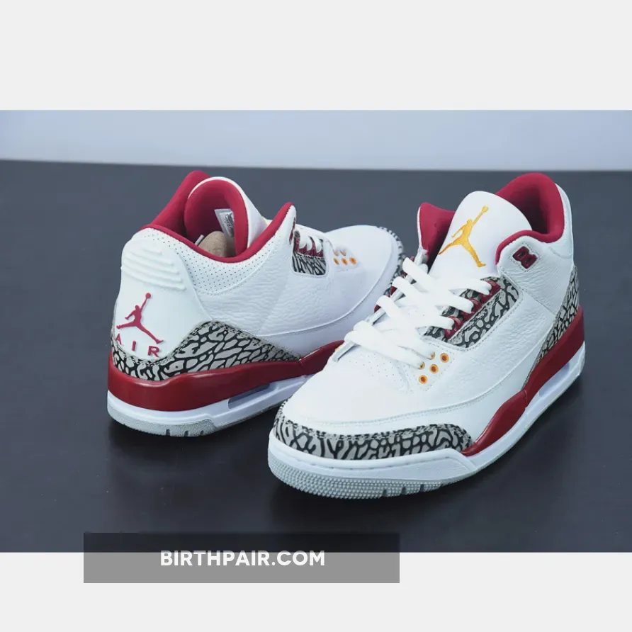 Year after year, Jordan Brand and Nike never fail to amaze the masses with their impressive line-up of releases. While a lot of retro colourways make a comeback through different models, new ensembles also pop up on the radar with a lot of story behind them. The Air Jordan 3 Cardinal is a pair that fits within that category, and even if you’re not a die-hard Jordan fan, these should still be a no-brainer cop. Official images are now live so read on as we dive deeper. Pulling inspiration from the Air Jordan 7 “Cardinal” that made its debut in 1992, this AJ3 variant comes in with a neat combo of white, cardinal red, light curry, and cement grey. The uppers indulge in pebbled leather textiles for a premium look and the classic elephant print pattern is maintained to ensure that the original aesthetic of the AJ3 is present. Branding comes in the form of a Jumpman logo embroidered onto the tongue and embossed onto the heel for a signature look, while there’s no Swoosh branding across this pair at all. The curved toe box, lace-up fastening, and visible Air unit underfoot rounds off this Air Jordan 3.