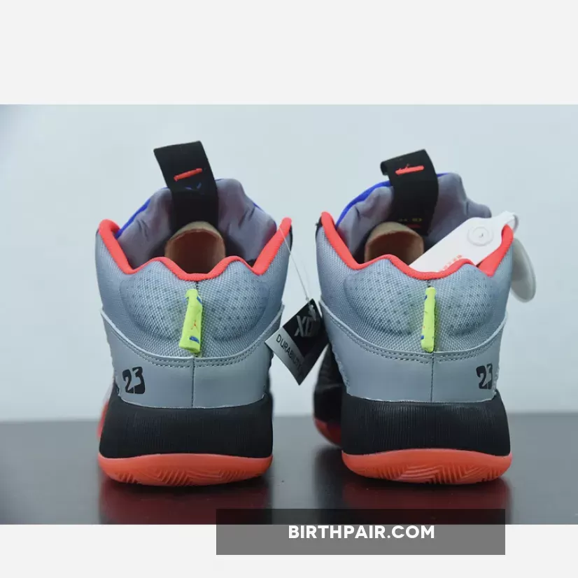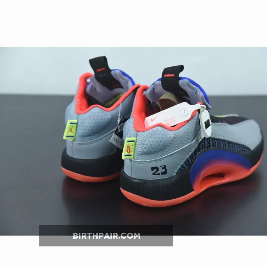 “I’m thrilled with my Air Jordan 35 ‘Center of Gravity’! 🙌 The sleek grey and vibrant color accents are a major win for me. I love how the iridescent detailing catches the light during games. 👀 The yellow heel tags add a nice pop of color too. 👍 The shoe is super comfy, thanks to the cushioned midsole and Eclipse Plate tech. 🏋️♂️ 10/10 would recommend!” ⭐️⭐️⭐️⭐️⭐️