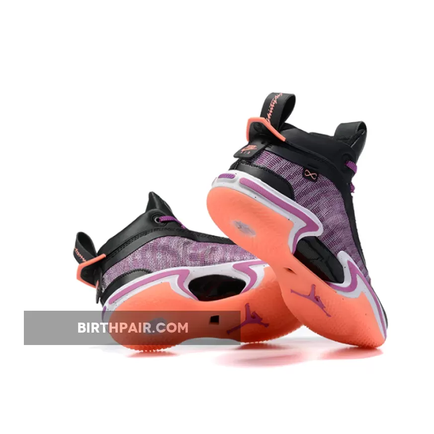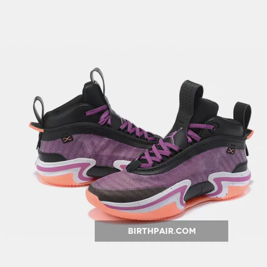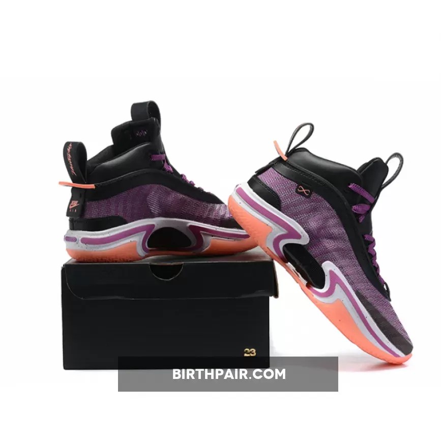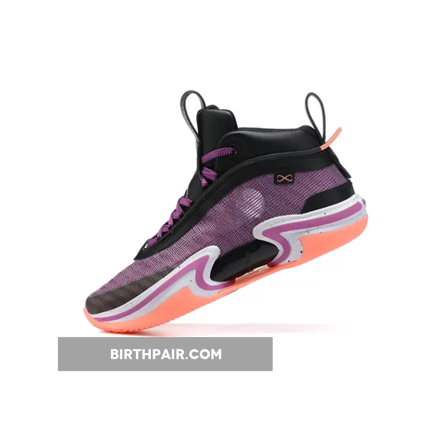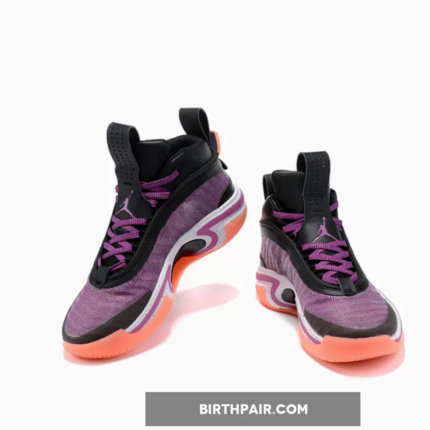 This Air Jordan 36 features a Black, White, Bright Mango, and Hyper Violet color combination. Constructed with minimal Jacquard Leno-Weave across the upper along with reinforced TPU ribbons. Next, it features a full-length Zoom Air Strobel stitched on the upper and a Zoom Air unit under the forefoot. Shades of Violet run across the base, laces, and branding while multiple shades gradient across the speckled midsole.
